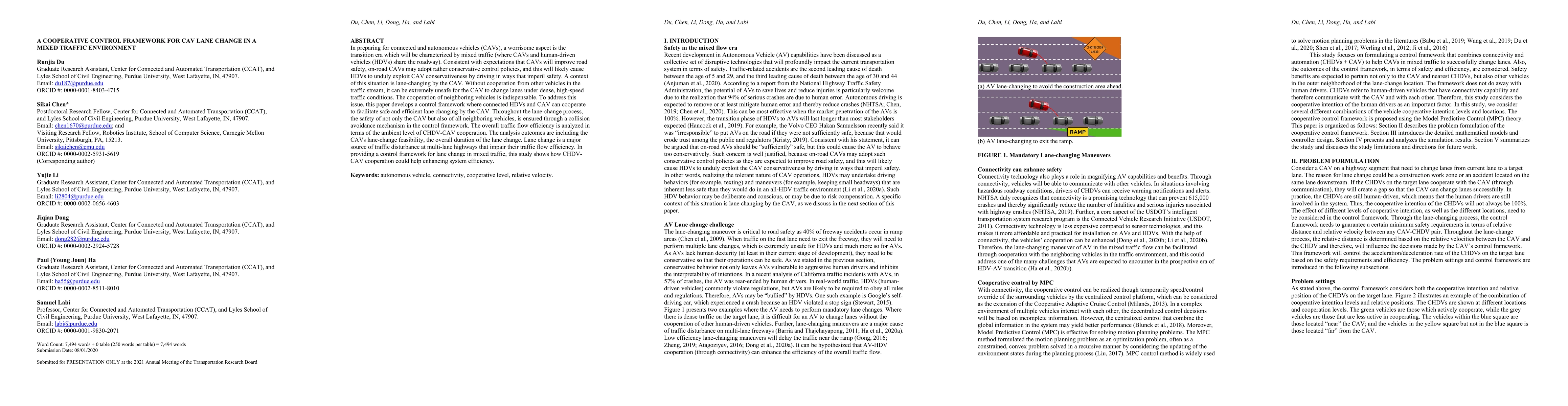 This paper proposes a cooperative control framework for CAV lane changes in mixed traffic environments, emphasizing the necessity of cooperation between connected HDVs and CAVs to ensure safety and efficiency. The framework incorporates a collision avoidance mechanism to enhance lane change feasibility and reduce traffic disturbance, analyzing the impact of HDV-CAV cooperation on overall traffic flow efficiency.