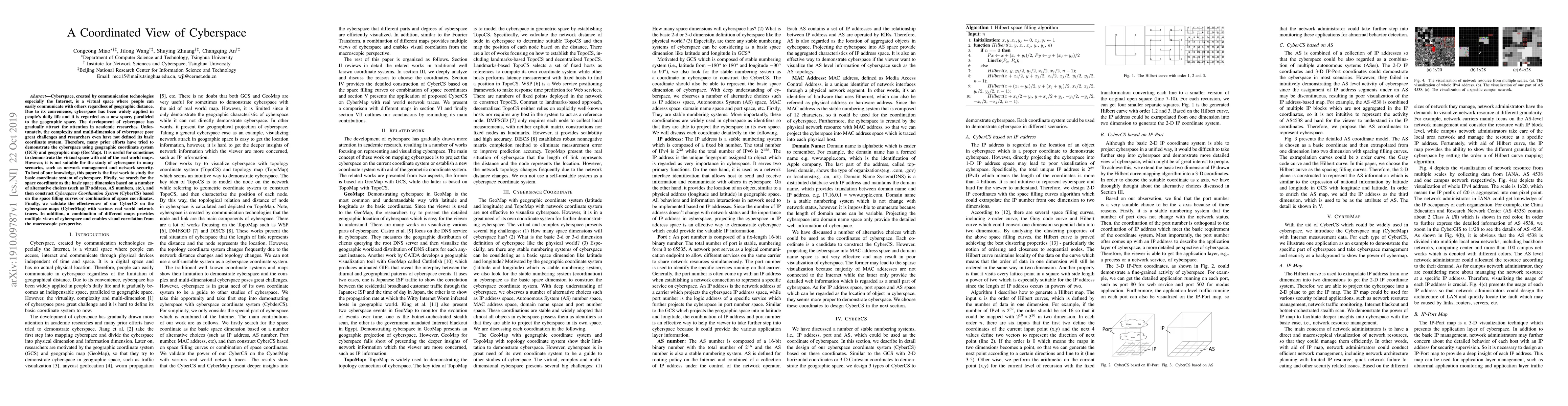 This paper proposes the Cyberspace Coordination System (CyberCS) to represent and visualize cyberspace, addressing the limitations of existing geographic and network coordinate systems. CyberCS aims to provide a more comprehensive and stable visualization of the complex, multi-dimensional nature of cyberspace, facilitating better understanding and exploration.