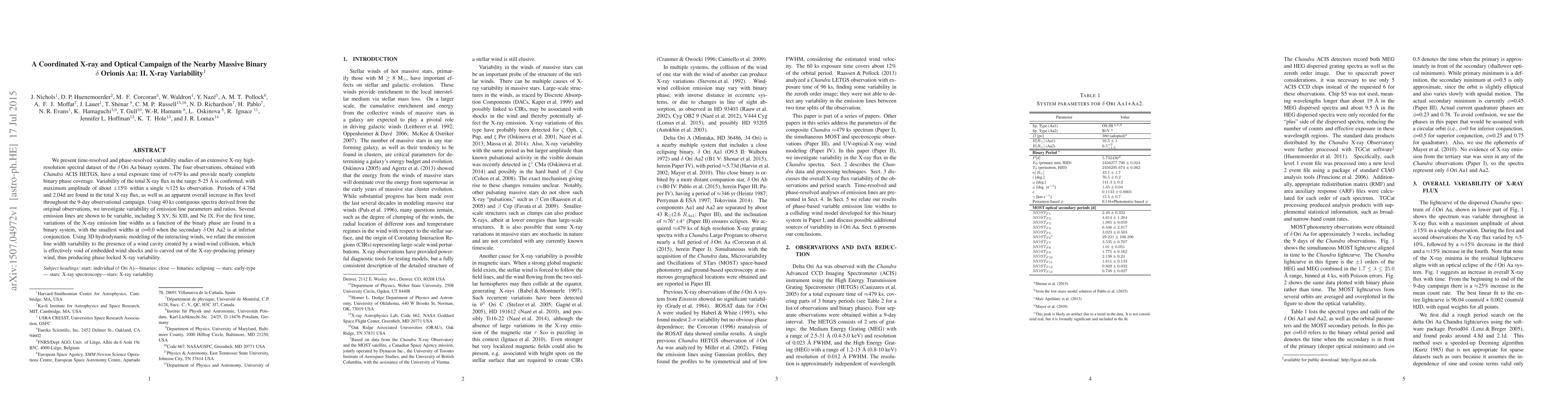 We present time-resolved and phase-resolved variability studies of an extensive X-ray high-resolution spectral dataset of the $\delta$ Orionis Aa binary system. The four observations, obtained with Chandra ACIS HETGS, have a total exposure time of ~479 ks and provide nearly complete binary phase coverage. Variability of the total X-ray flux in the range 5-25 $\AA$ is confirmed, with maximum amplitude of about +/-15% within a single ~125 ks observation. Periods of 4.76d and 2.04d are found in the total X-ray flux, as well as an apparent overall increase in flux level throughout the 9-day observational campaign. Using 40 ks contiguous spectra derived from the original observations, we investigate variability of emission line parameters and ratios. Several emission lines are shown to be variable, including S XV, Si XIII, and Ne IX. For the first time, variations of the X-ray emission line widths as a function of the binary phase are found in a binary system, with the smallest widths at phase=0.0 when the secondary $\delta$ Orionis Aa2 is at inferior conjunction. Using 3D hydrodynamic modeling of the interacting winds, we relate the emission line width variability to the presence of a wind cavity created by a wind-wind collision, which is effectively void of embedded wind shocks and is carved out of the X-ray-producing primary wind, thus producing phase-locked X-ray variability.