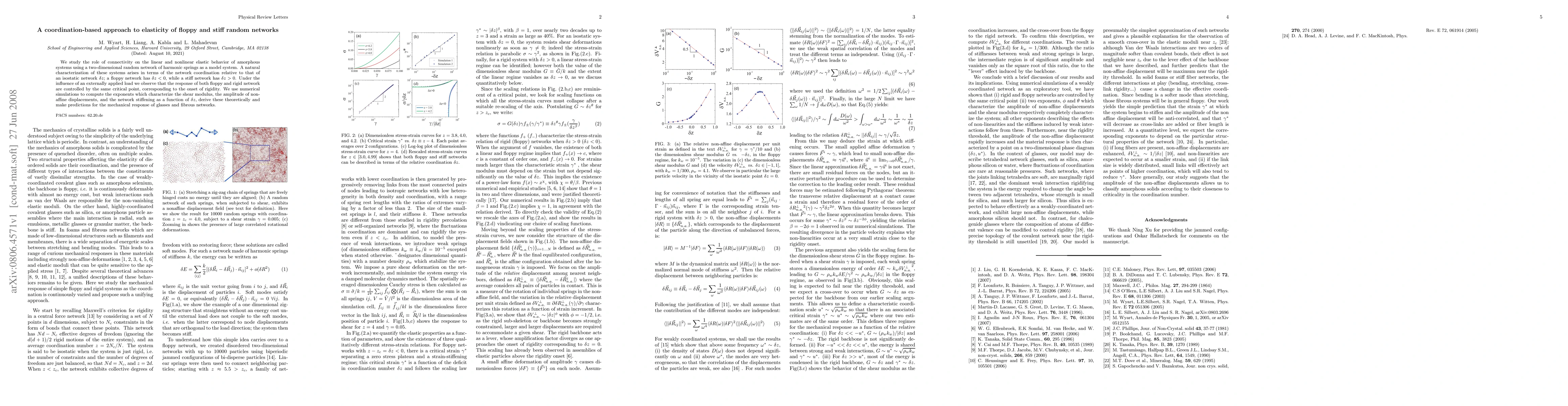 This paper explores the elasticity of random networks modeled as harmonic springs, focusing on the relationship between network coordination and its elastic behavior. It finds that both floppy and stiff networks respond to external loads through a critical point marking the onset of rigidity, and uses simulations and theoretical derivations to predict the mechanical response of amorphous systems.