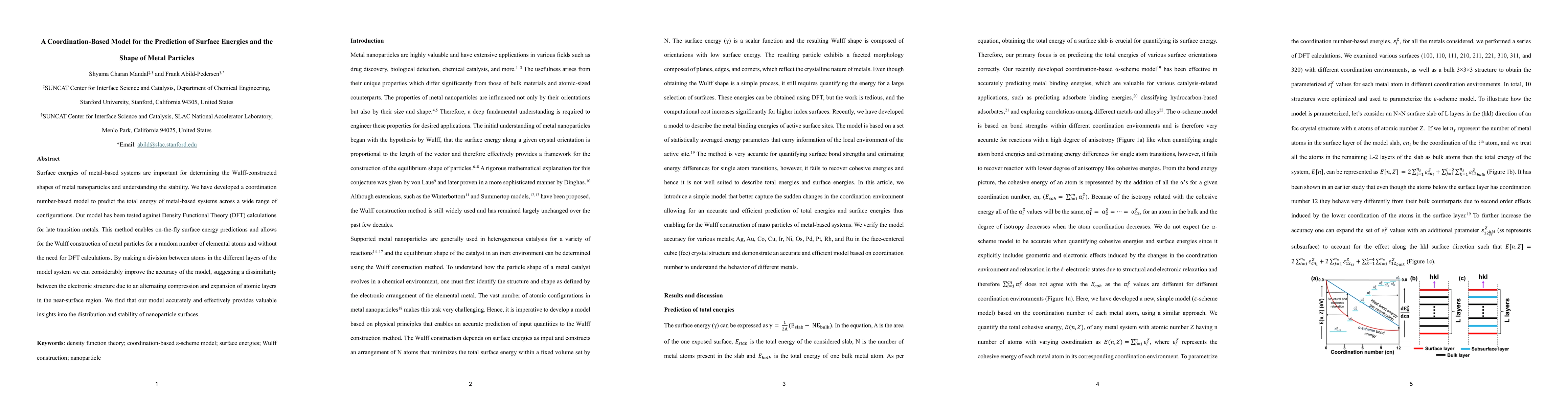 Surface energies of metal-based systems are important for determining the Wulff-constructed shapes of metal nanoparticles and understanding the stability. We have developed a coordination number-based model to predict the total energy of metal-based systems across a wide range of configurations. Our model has been tested against Density Functional Theory (DFT) calculations for late transition metals. This method enables on-the-fly surface energy predictions and allows for the Wulff construction of metal particles for a random number of elemental atoms and without the need for DFT calculations. By making a division between atoms in the different layers of the model system we can considerably improve the accuracy of the model, suggesting a dissimilarity between the electronic structure due to an alternating compression and expansion of atomic layers in the near-surface region. We find that our model accurately and effectively provides valuable insights into the distribution and stability of nanoparticle surfaces.