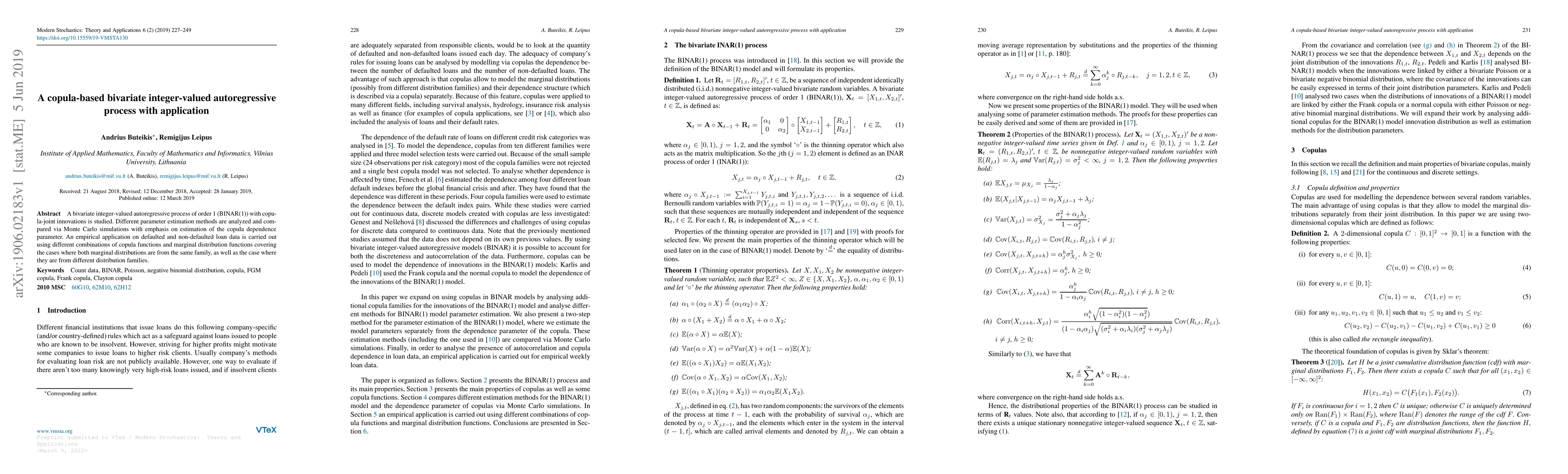 A bivariate integer-valued autoregressive process of order 1 (BINAR(1)) with copula-joint innovations is studied. Different parameter estimation methods are analyzed and compared via Monte Carlo simulations with emphasis on estimation of the copula dependence parameter. An empirical application on defaulted and non-defaulted loan data is carried out using different combinations of copula functions and marginal distribution functions covering the cases where both marginal distributions are from the same family, as well as the case where they are from different distribution families.