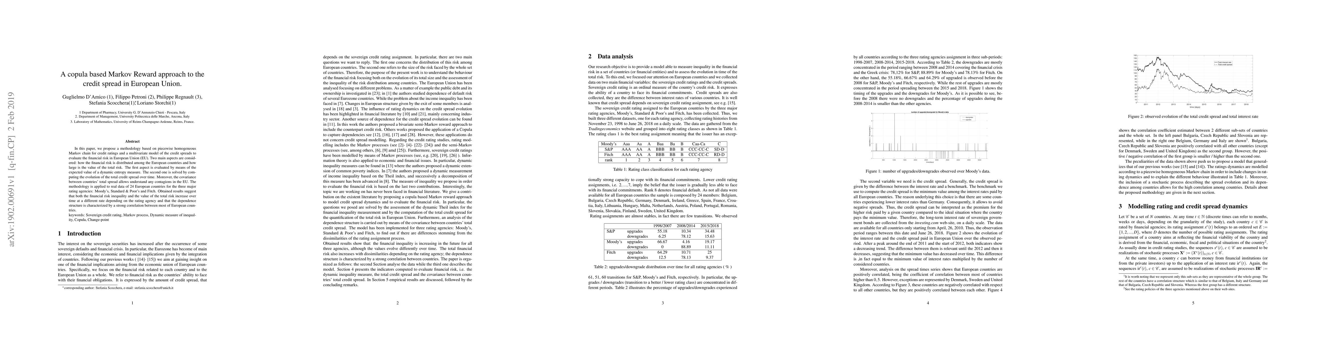 This paper introduces a copula-based Markov Reward approach to assess credit spreads in the European Union. It evaluates financial risk distribution among EU countries and the total risk value, revealing increasing risk inequality and strong inter-country correlations, analyzed using real data from major rating agencies.