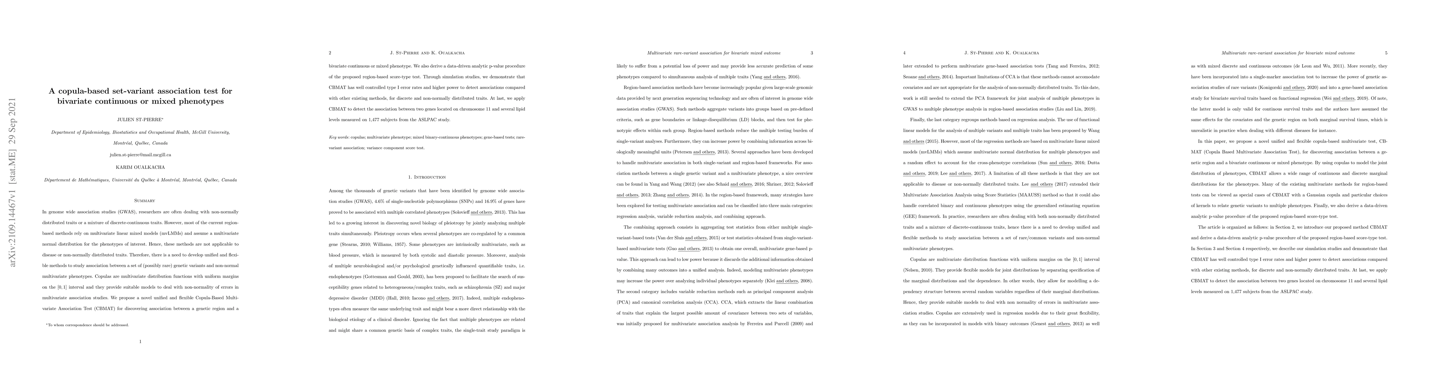 This paper proposes a novel Copula-Based Multivariate Association Test (CBMAT) to detect associations between genetic variants and non-normally distributed or mixed phenotypes, demonstrating superior performance over existing methods through simulations and an application to lipid levels data.