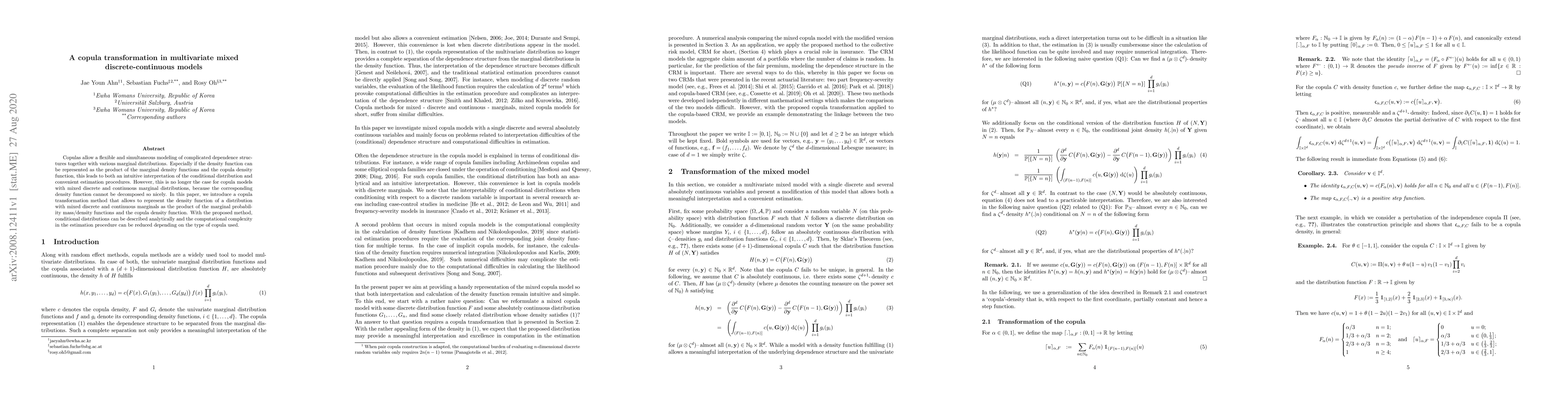 This paper introduces a copula transformation method to model complex dependence structures in multivariate mixed discrete-continuous data. The proposed method allows the density function to be decomposed into marginal and copula components, facilitating intuitive conditional distribution interpretation and reducing computational complexity in estimation.