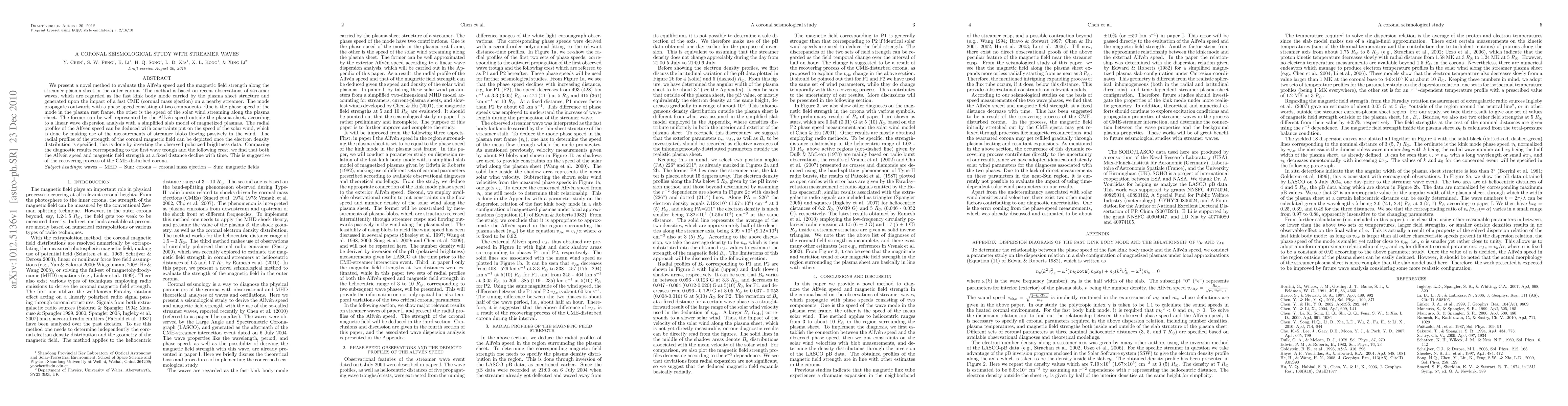 This paper introduces a method to assess Alfven speed and magnetic field strength in the outer corona using streamer waves, which are generated by coronal mass ejections. The study finds that both the Alfven speed and magnetic field strength decrease over time, indicating the recovery of the corona after a disturbance.