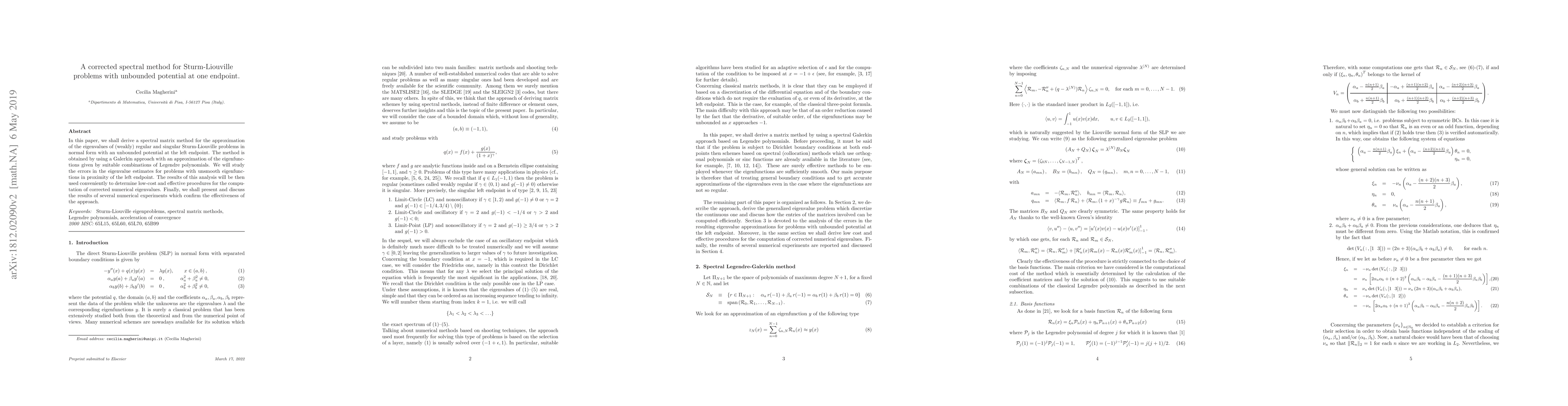 In this paper, we shall derive a spectral matrix method for the approximation of the eigenvalues of (weakly) regular and singular Sturm-Liouville problems in normal form with an unbounded potential at the left endpoint. The method is obtained by using a Galerkin approach with an approximation of the eigenfunctions given by suitable combinations of Legendre polynomials. We will study the errors in the eigenvalue estimates for problems with unsmooth eigenfunctions in proximity of the left endpoint. The results of this analysis will be then used conveniently to determine low-cost and effective procedures for the computation of corrected numerical eigenvalues. Finally, we shall present and discuss the results of several numerical experiments which confirm the effectiveness of the approach.