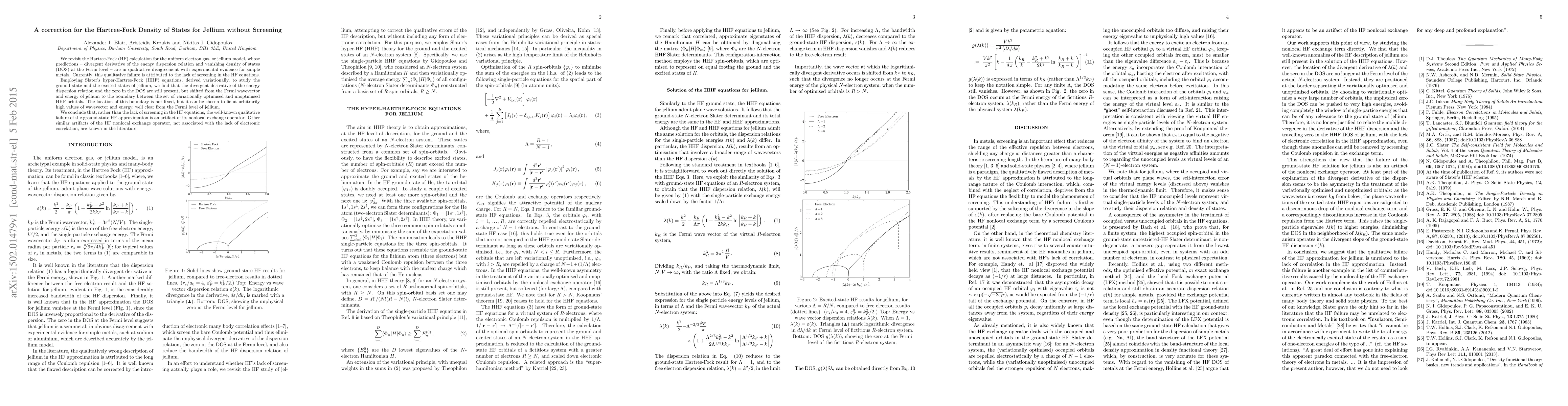 This paper corrects the Hartree-Fock (HF) density of states for the jellium model, finding that the qualitative failure of HF predictions is due to its nonlocal exchange operator rather than the lack of screening. The study reveals that the problematic features can be shifted away from the Fermi level using Slater's hyper-Hartree-Fock equations.