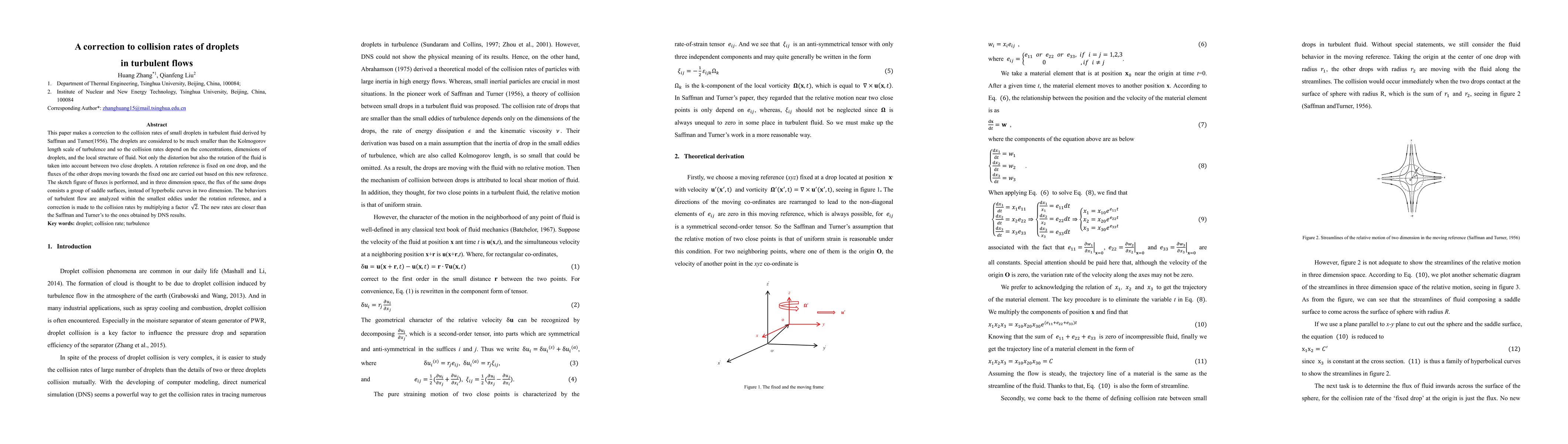 This paper makes a correction to the collision rates of small droplets in turbulent fluid derived by Saffman and Turner(1956). Not only the distortion but also the rotation of the fluid is taken into account between two close droplets. A rotation reference is fixed on one drop, and the fluxes of the other drops moving towards the fixed one are carried out based on this new reference. The behaviors of turbulent flow are analyzed within the smallest eddies under the rotation reference, and a correction is made to the collision rates by multiplying a factor sqrt(2).