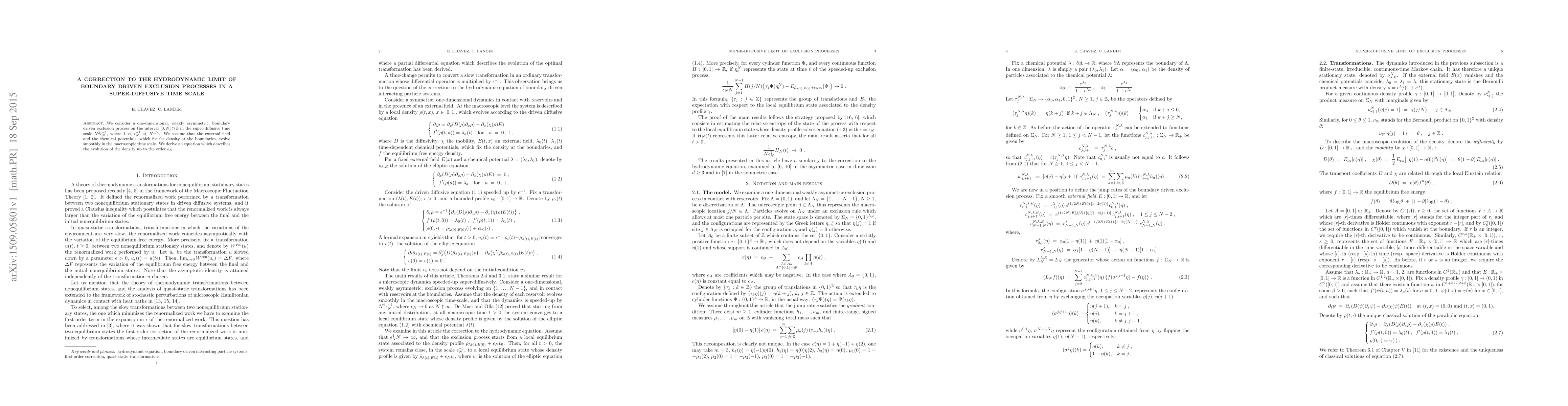 This paper corrects the hydrodynamic limit for a one-dimensional, weakly asymmetric, boundary driven exclusion process in a super-diffusive time scale. It derives an equation describing density evolution up to the order $\epsilon_N$, considering smooth evolution of external field and chemical potentials.