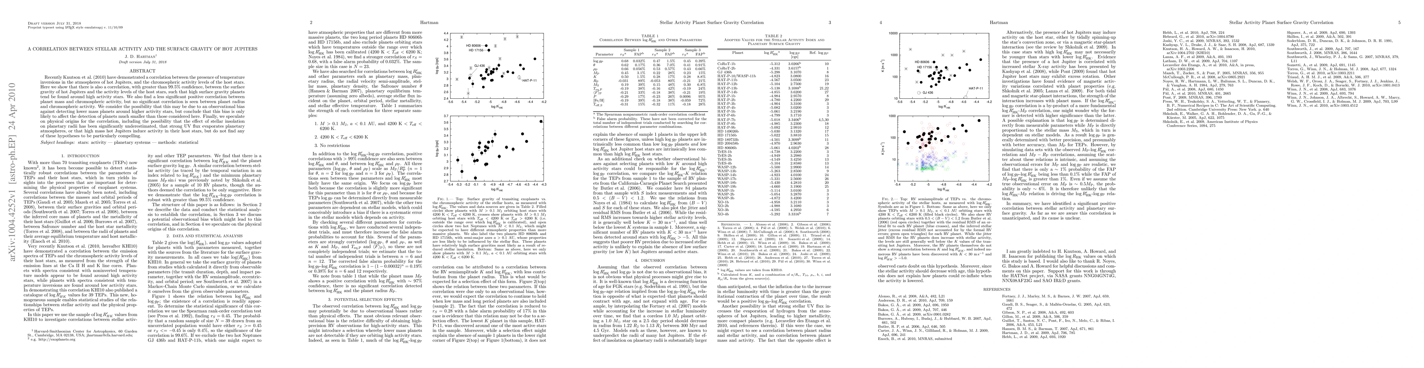 Recently Knutson et al. (2010) have demonstrated a correlation between the presence of temperature inversions in the atmospheres of hot Jupiters, and the chromospheric activity levels of the host stars. Here we show that there is also a correlation, with greater than 99.5% confidence, between the surface gravity of hot Jupiters and the activity levels of the host stars, such that high surface gravity planets tend be found around high activity stars. We also find a less significant positive correlation between planet mass and chromospheric activity, but no significant correlation is seen between planet radius and chromospheric activity. We consider the possibility that this may be due to an observational bias against detecting lower mass planets around higher activity stars, but conclude that this bias is only likely to affect the detection of planets much smaller than those considered here. Finally, we speculate on physical origins for the correlation, including the possibility that the effect of stellar insolation on planetary radii has been significantly underestimated, that strong UV flux evaporates planetary atmospheres, or that high mass hot Jupiters induce activity in their host stars, but do not find any of these hypotheses to be particularly compelling.