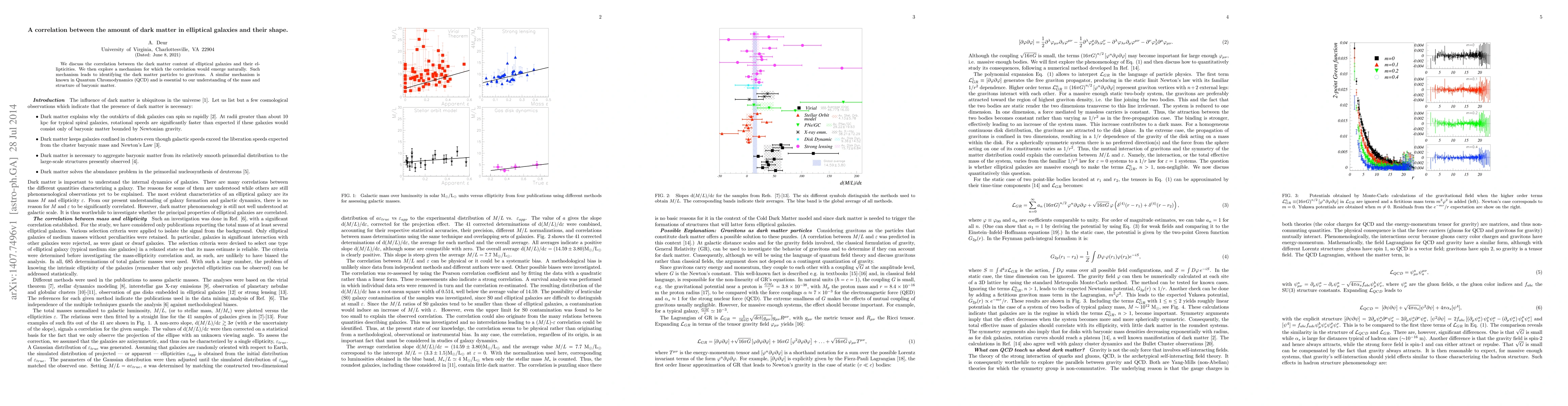 We discuss the correlation between the dark matter content of elliptical galaxies and their ellipticities. We then explore a mechanism for which the correlation would emerge naturally. Such mechanism leads to identifying the dark matter particles to gravitons. A similar mechanism is known in Quantum Chromodynamics (QCD) and is essential to our understanding of the mass and structure of baryonic matter.