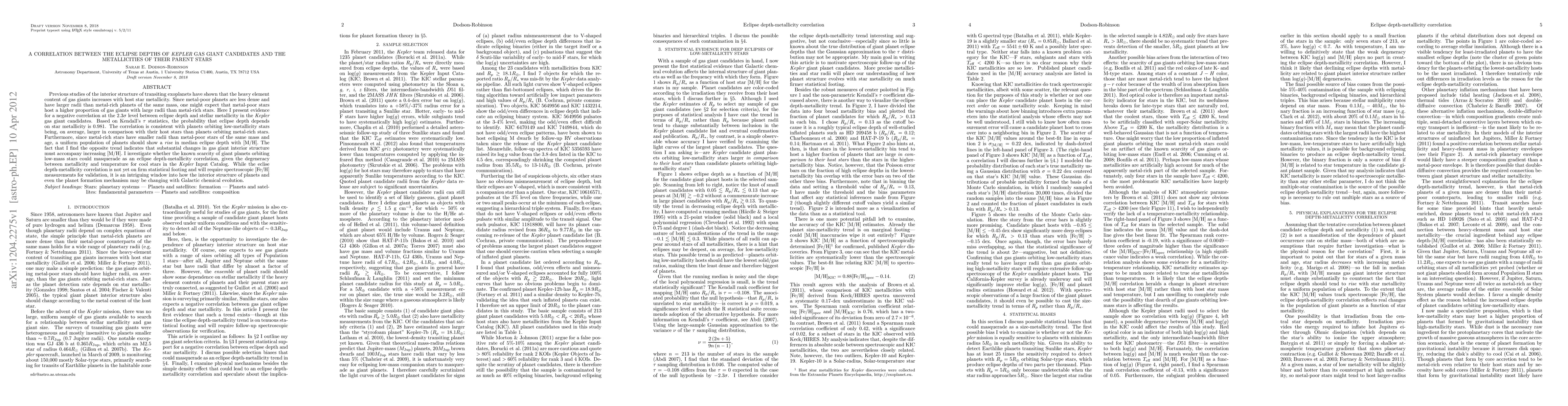 This study finds a correlation between the eclipse depths of Kepler gas giant candidates and the metallicities of their parent stars, suggesting that planets around metal-poor stars tend to have larger radii. The observed trend contradicts the expected rise in median eclipse depth with increasing metallicity, indicating significant changes in gas giant interior structure with Galactic chemical evolution.