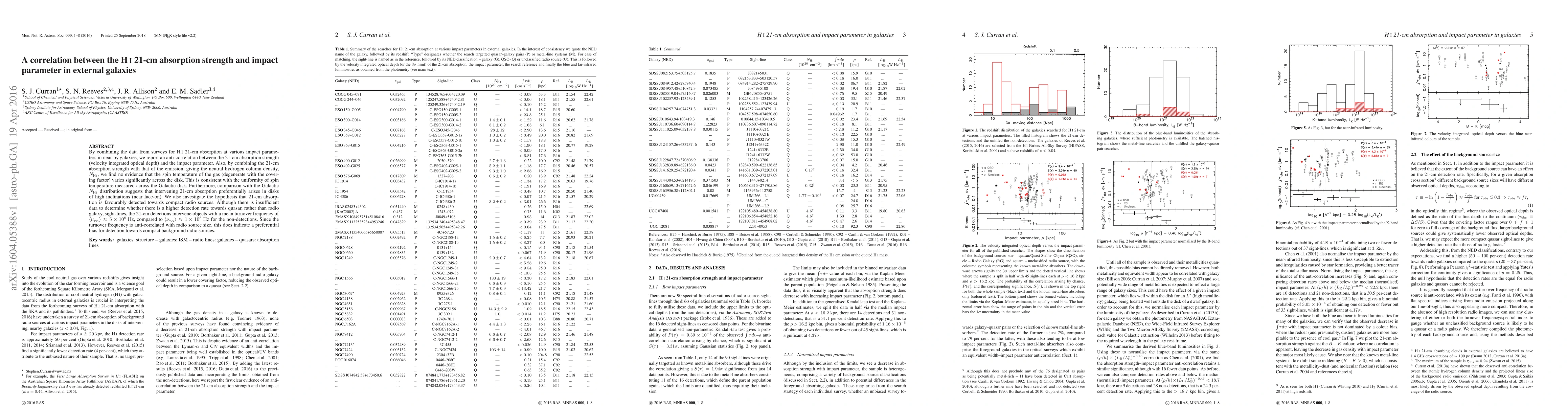 By combining the data from surveys for HI 21-cm absorption at various impact parameters in near-by galaxies, we report an anti-correlation between the 21-cm absorption strength (velocity integrated optical depth) and the impact parameter. Also, by combining the 21-cm absorption strength with that of the emission, giving the neutral hydrogen column density, we find no evidence that the spin temperature of the gas (degenerate with the covering factor) varies significantly across the disk. This is consistent with the uniformity of spin temperature measured across the Galactic disk. Furthermore, comparison with the Galactic distribution suggests that intervening 21-cm absorption preferentially arises in disks of high inclinations (near face-on). We also investigate the hypothesis that 21-cm absorption is favourably detected towards compact radio sources. Although there is insufficient data to determine whether there is a higher detection rate towards quasar, rather than radio galaxy, sight-lines, the 21-cm detections intervene objects with a mean turnover frequency of 5 x 10^8 Hz, compared to 1 x 10^8 Hz for the non-detections. Since the turnover frequency is anti-correlated with radio source size, this does indicate a preferential bias for detection towards compact background radio sources.
