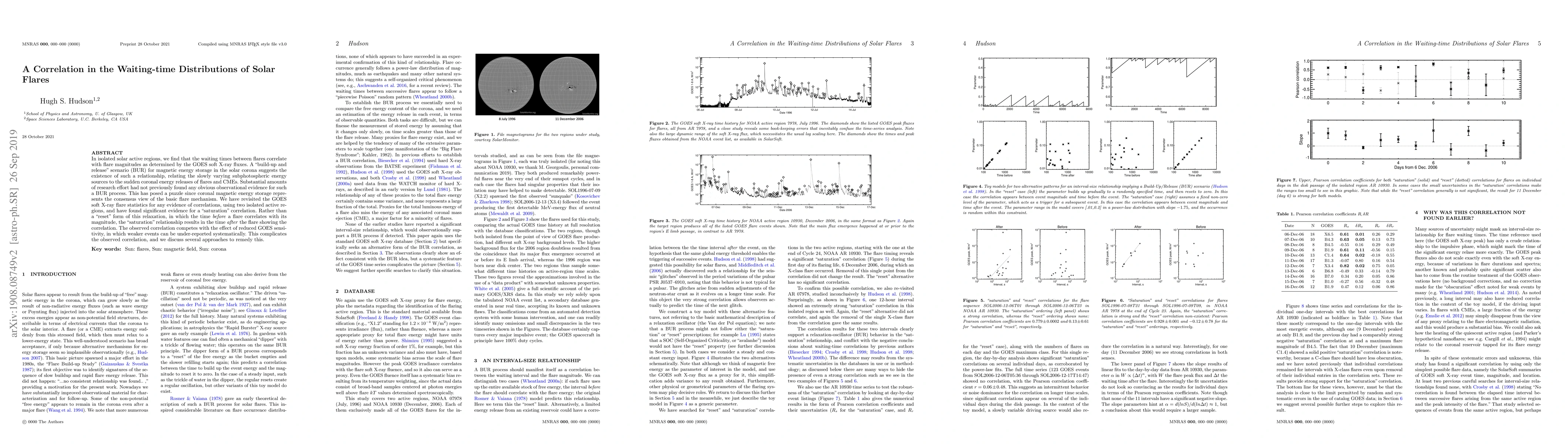 In isolated solar active regions, we find that the waiting times between flares correlate with flare magnitudes as determined by the GOES soft X-ray fluxes. A "build-up and release" scenario (BUR) for magnetic energy storage in the solar corona suggests the existence of such a relationship, relating the slowly varying subphotospheric energy sources to the sudden coronal energy releases of flares and CMEs. Substantial amounts of research effort had not previously found any obvious observational evidence for such a BUR process. This has posed a puzzle since coronal magnetic energy storage represents the consensus view of the basic flare mechanism. We have revisited the GOES soft X-ray flare statistics for any evidence of correlations, using two isolated active regions, and have found significant evidence for a "saturation" correlation. Rather than a "reset" form of this relaxation, in which the time \textit{before} a flare correlates with its magnitude, the "saturation" relationship results in the time \textit{after} the flare showing the correlation. The observed correlation competes with the effect of reduced GOES sensitivity, in which weaker events can be under-reported systematically. This complicates the observed correlation, and we discuss several approaches to remedy this.