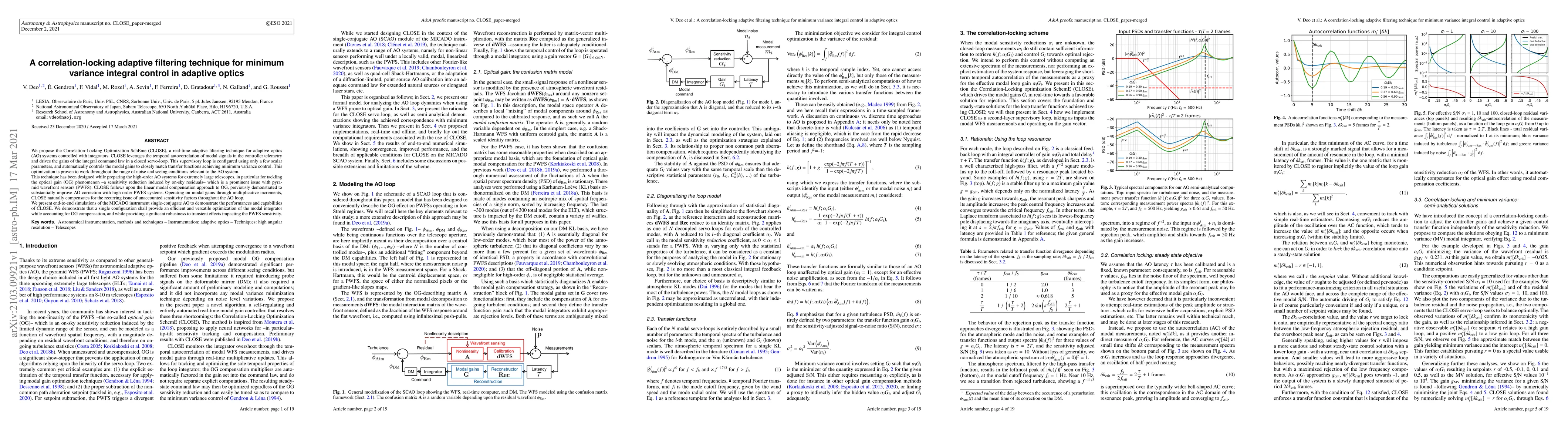 We propose the Correlation-Locking Optimization SchEme (CLOSE), a real-time adaptive filtering technique for adaptive optics (AO) systems controlled with integrators. CLOSE leverages the temporal autocorrelation of modal signals in the controller telemetry and drives the gains of the integral command law in a closed servo-loop. This supervisory loop is configured using only a few scalar parameters, and automatically controls the modal gains to closely match transfer functions achieving minimum variance control. This optimization is proven to work throughout the range of noise and seeing conditions relevant to the AO system. This technique has been designed while preparing the high-order AO systems for extremely large telescopes, in particular for tackling the optical gain (OG) phenomenon -- a sensitivity reduction induced by on-sky residuals -- which is a prominent issue with pyramid wavefront sensors (PWFS). CLOSE follows upon the linear modal compensation approach to OG, previously demonstrated to substantially improve AO correction with high order PWFS systems. Operating on modal gains through multiplicative increments, CLOSE naturally compensates for the recurring issue of unaccounted sensitivity factors throughout the AO loop. We present end-to-end simulations of the MICADO instrument single-conjugate AO to demonstrate the performances and capabilities of CLOSE. We demonstrate that a single configuration shall provide an efficient and versatile optimization of the modal integrator while accounting for OG compensation, and while providing significant robustness to transient effects impacting the PWFS sensitivity.