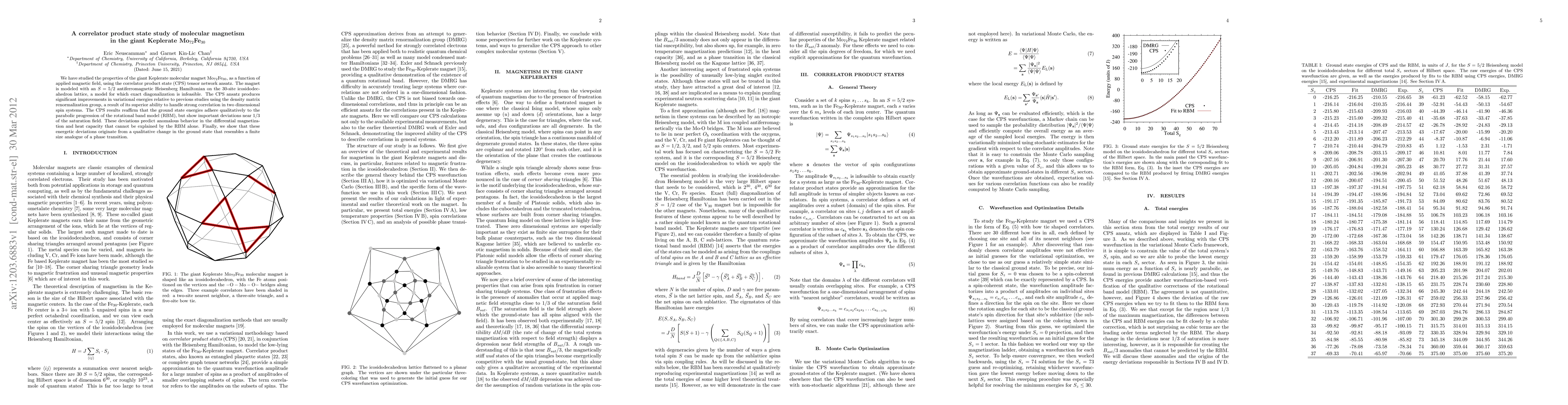 The research uses the Correlator Product State (CPS) method to study the molecular magnet Mo72Fe30, showing it improves upon previous density matrix renormalization group results. Key findings include ground state energy deviations near 1/3 of saturation field, predicting anomalous magnetic and thermal behavior, and hinting at a phase transition analogue in this finite system.