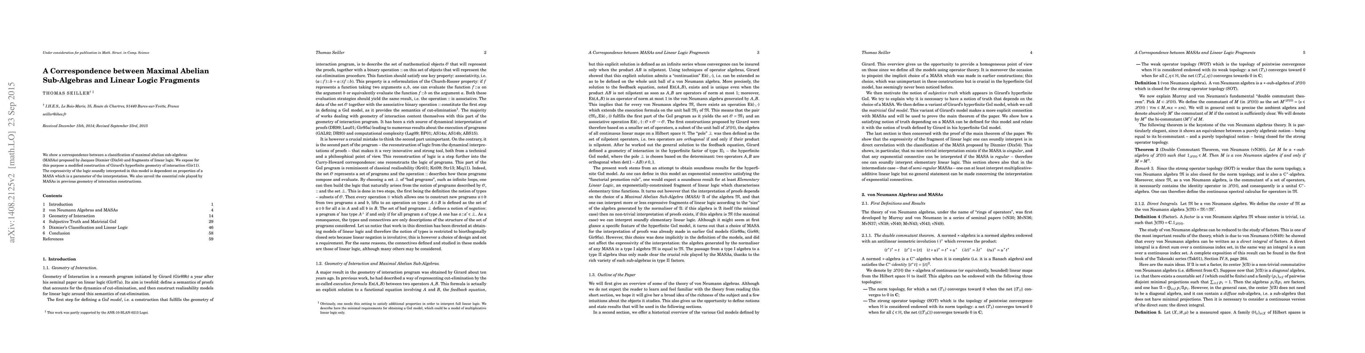 We show a correspondence between a classification of maximal abelian sub-algebras (MASAs) proposed by Jacques Dixmier and fragments of linear logic. We expose for this purpose a modified construction of Girard's hyperfinite geometry of interaction which interprets proofs as operators in a von Neumann algebra. The expressivity of the logic soundly interpreted in this model is dependent on properties of a MASA which is a parameter of the interpretation. We also unveil the essential role played by MASAs in previous geometry of interaction constructions.