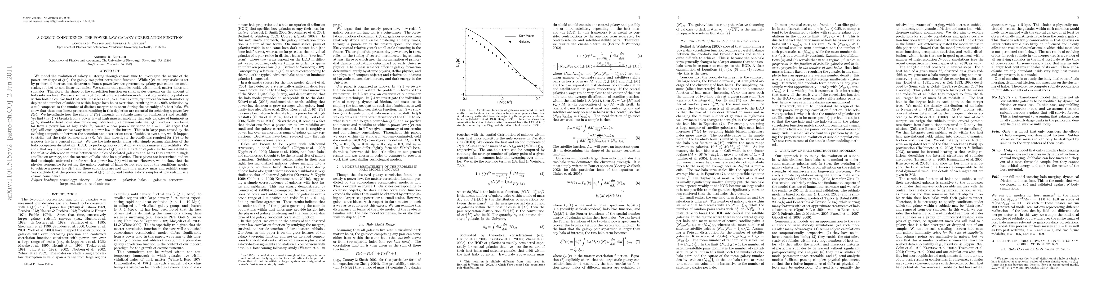 We model the evolution of galaxy clustering through cosmic time to investigate the nature of the power-law shape of xi(r), the galaxy two-point correlation function. Departures from a power law are mainly governed by galaxy pair counts on small scales, subject to non-linear dynamics. We assume that galaxies reside within dark matter halos and subhalos and use a semi-analytic substructure evolution model to study subhalo populations within host halos. We find that tidal mass loss and, to a lesser degree, dynamical friction deplete the number of subhalos within larger host halos over time by ~90%, just the right amount for achieving a power-law xi(r) at z = 0. We find that xi(r) breaks from a power law at high masses, implying that only galaxies of luminosities <= Lstar should exhibit power-law clustering. We also demonstrate that xi(r) evolves from being far from a power law at high redshift, toward a near power law at z = 0 and deviates in the future. This is mainly caused by the evolving competition between the accretion and destruction rates of subhalos, which happen to strike just the right balance at z~0. We show that key ingredients determining the shape of xi(r) are the fraction of galaxies that are satellites, the relative difference in mass between the halos of isolated galaxies and halos that contain a single satellite on average, and the rareness of halos that host galaxies. These pieces are intertwined and we find no simple, universal rule for which a power-law xi(r) will occur. However, we do show that the physics responsible for setting the galaxy content of halos do not care about the conditions needed to achieve a power law xi(r) and these conditions are met only in a narrow mass and redshift range. We conclude that the power-law nature of xi(r) for Lstar and fainter galaxy samples at low redshift is a cosmic coincidence. (Abridged)
