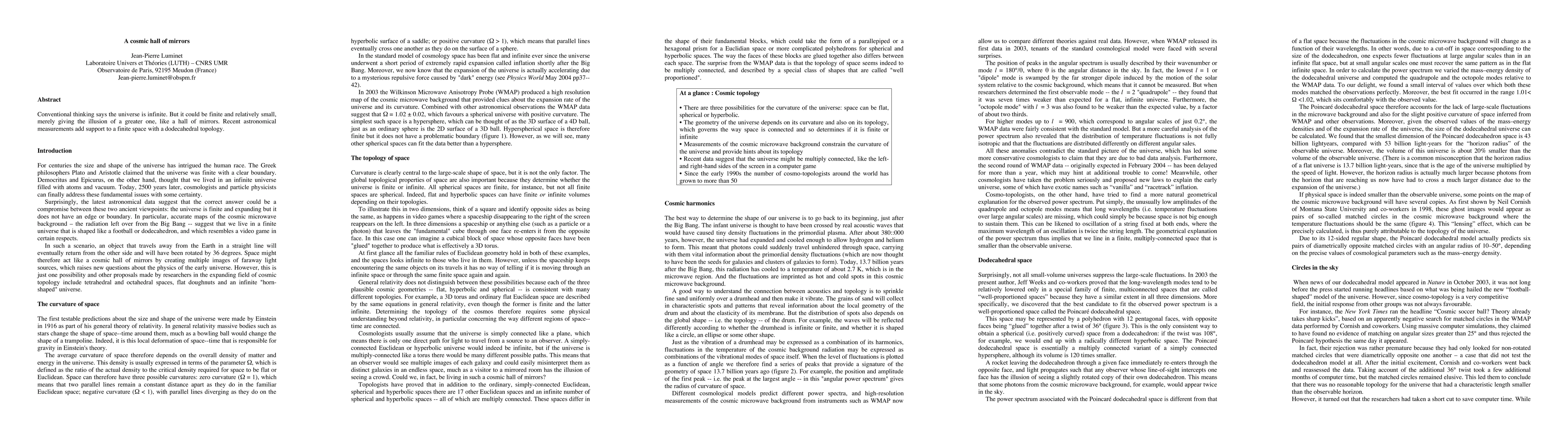 Conventional thinking says the universe is infinite. But it could be finite and relatively small, merely giving the illusion of a greater one, like a hall of mirrors. Recent astronomical measurements add support to a finite space with a dodecahedral topology.