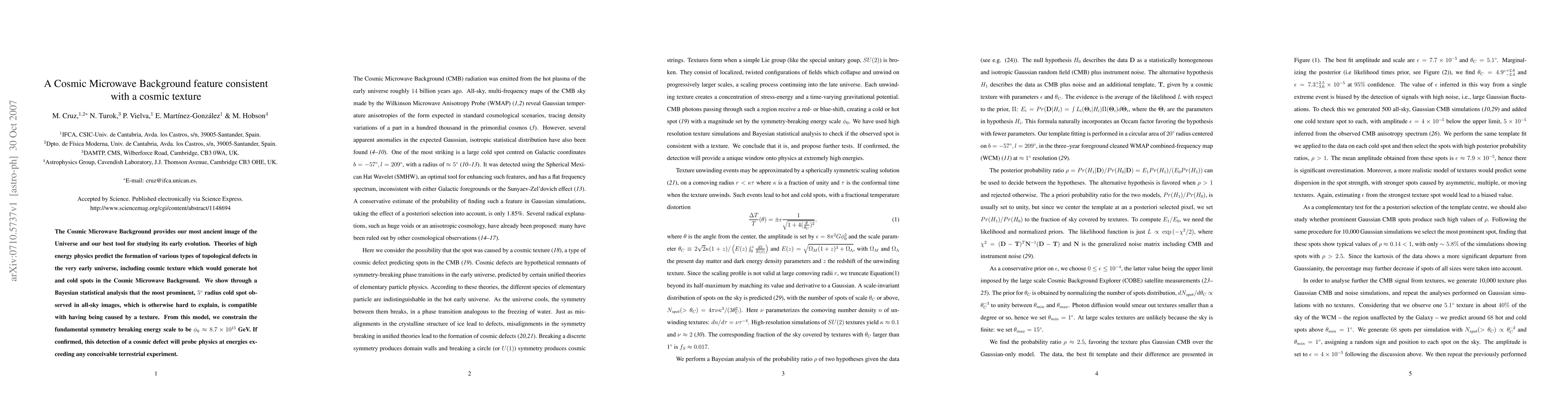 This paper presents evidence from a Bayesian analysis suggesting that a prominent cold spot in the Cosmic Microwave Background could be due to a cosmic texture, a predicted topological defect from high-energy physics. The detection, if confirmed, would indicate a symmetry breaking energy scale of approximately 8.7 x 10^(15) GeV, probing physics beyond terrestrial experiments.