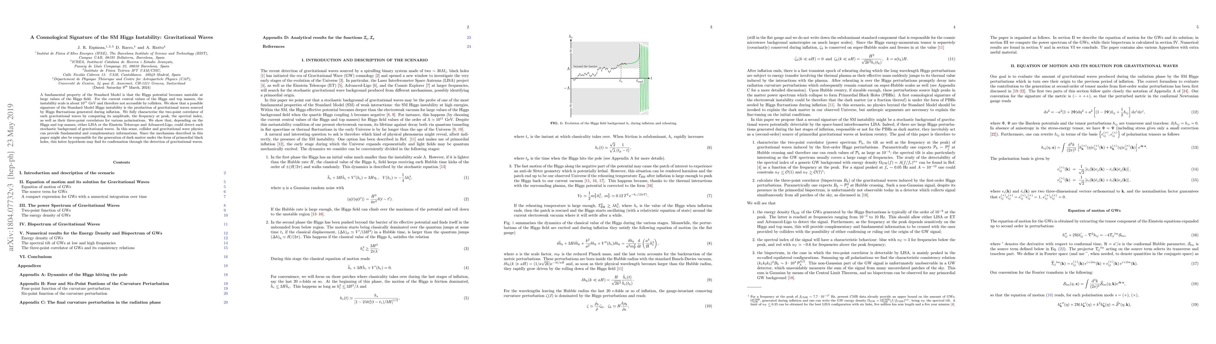 A fundamental property of the Standard Model is that the Higgs potential becomes unstable at large values of the Higgs field. For the current central values of the Higgs and top masses, the instability scale is about $10^{11}$ GeV and therefore not accessible by colliders. We show that a possible signature of the Standard Model Higgs instability is the production of gravitational waves sourced by Higgs fluctuations generated during inflation. We fully characterise the two-point correlator of such gravitational waves by computing its amplitude, the frequency at peak, the spectral index, as well as their three-point correlators for various polarisations. We show that, depending on the Higgs and top masses, either LISA or the Einstein Telescope and Advanced-Ligo, could detect such stochastic background of gravitational waves. In this sense, collider and gravitational wave physics can provide fundamental and complementary informations. Furthermore, the consistency relation among the three- and the two-point correlators could provide an efficient tool to ascribe the detected gravitational waves to the Standard Model itself. Since the mechanism described in this paper might also be responsible for the generation of dark matter under the form of primordial black holes, this latter hypothesis may find its confirmation through the detection of gravitational waves.