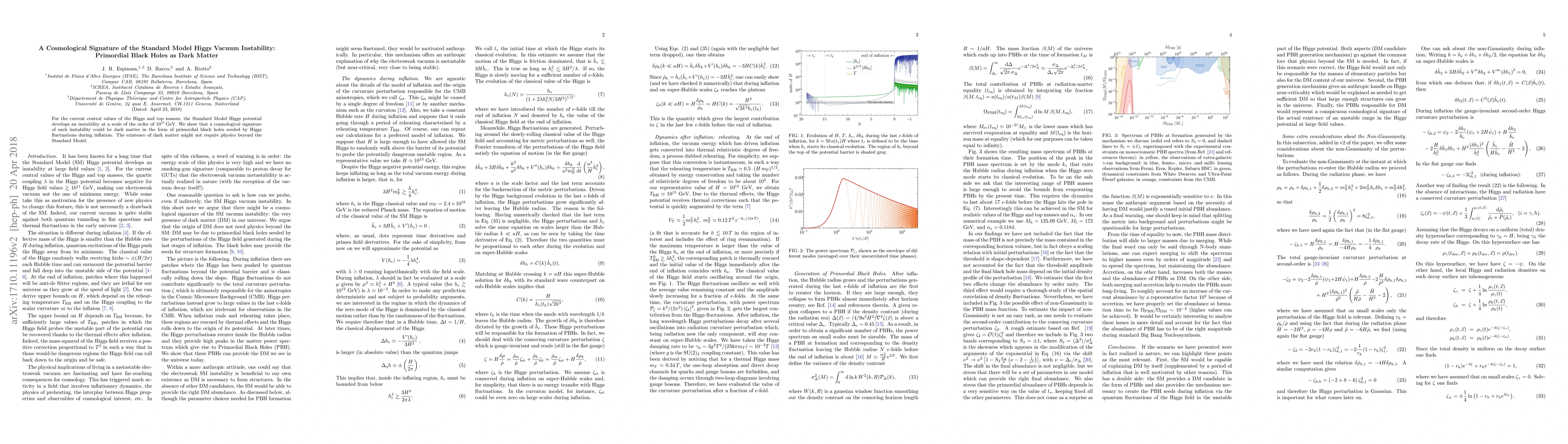 For the current central values of the Higgs and top masses, the Standard Model Higgs potential develops an instability at a scale of the order of $10^{11}$ GeV. We show that a cosmological signature of such instability could be dark matter in the form of primordial black holes seeded by Higgs fluctuations during inflation. The existence of dark matter might not require physics beyond the Standard Model.