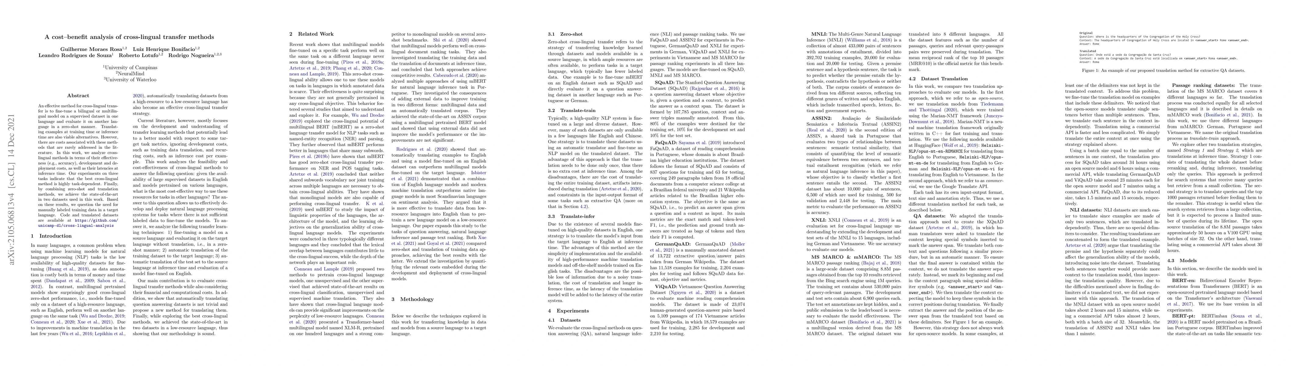An effective method for cross-lingual transfer is to fine-tune a bilingual or multilingual model on a supervised dataset in one language and evaluating it on another language in a zero-shot manner. Translating examples at training time or inference time are also viable alternatives. However, there are costs associated with these methods that are rarely addressed in the literature. In this work, we analyze cross-lingual methods in terms of their effectiveness (e.g., accuracy), development and deployment costs, as well as their latencies at inference time. Our experiments on three tasks indicate that the best cross-lingual method is highly task-dependent. Finally, by combining zero-shot and translation methods, we achieve the state-of-the-art in two of the three datasets used in this work. Based on these results, we question the need for manually labeled training data in a target language. Code and translated datasets are available at https://github.com/unicamp-dl/cross-lingual-analysis