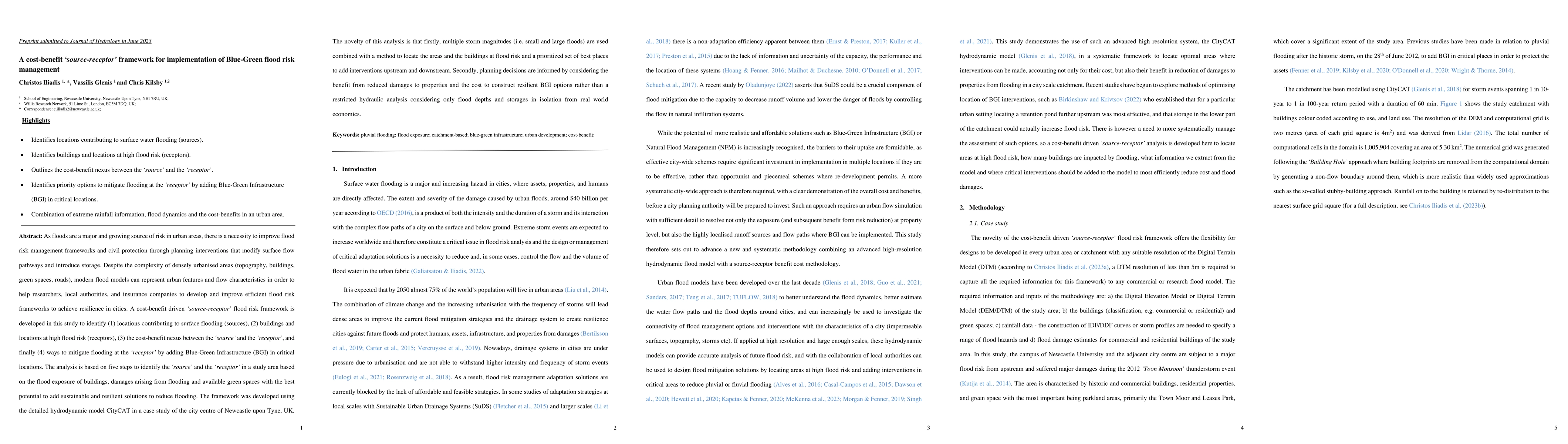 This paper introduces a cost-benefit driven source-receptor framework for Blue-Green flood risk management, utilizing modern urban flood models to identify flood-prone areas and high-risk buildings. It prioritizes strategic locations for Blue-Green Infrastructure to mitigate flooding while considering economic benefits and costs, demonstrating this approach in Newcastle upon Tyne.