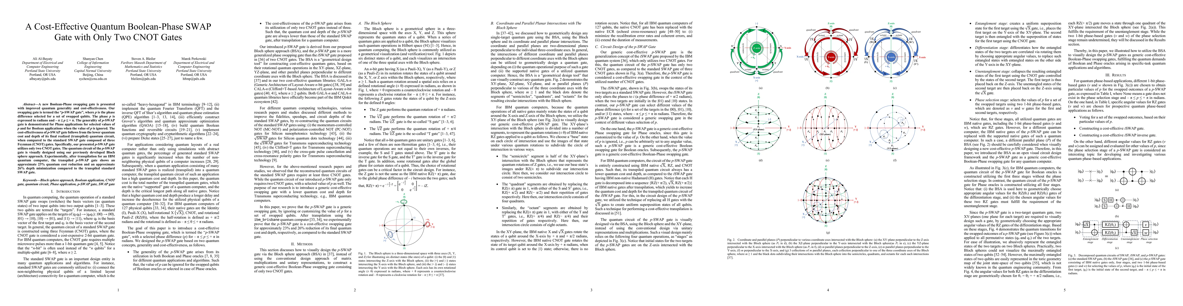 The research introduces a cost-effective 'p-SWAP' gate, a Boolean-Phase swapping gate using only two CNOT gates, offering improved generality and reduced quantum cost and depth compared to the standard SWAP gate which requires three CNOT gates. Experimental transpilation on IBM quantum computers verified approximately 23% reduction in quantum cost and 26% minimization in depth.