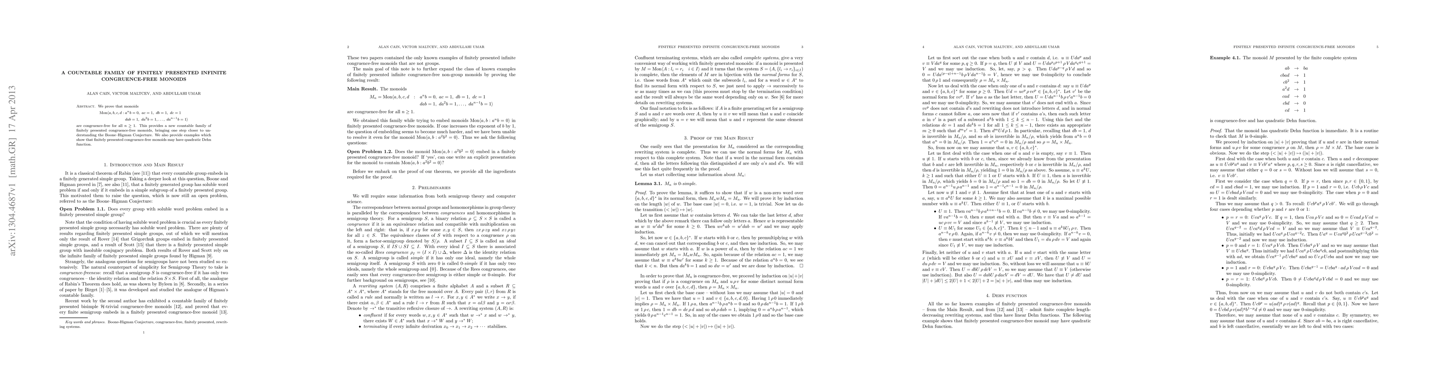 This paper proves that certain monoids with specific relations are congruence-free for all $n \geq 1$, contributing to a countable family of such monoids. It also demonstrates that these monoids can have quadratic Dehn functions, advancing understanding of the Boone--Higman Conjecture.