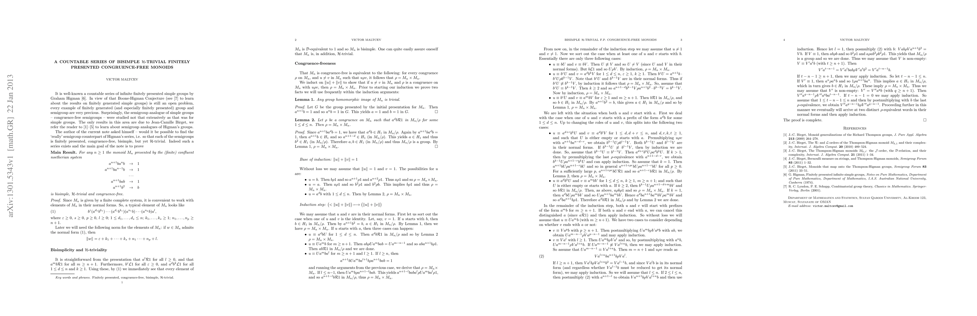 Summary: This paper presents a countable series of bisimple, $\mathcal{H}$-trivial, finitely presented monoids that lack any non-trivial congruences. These monoids are of interest in the study of algebraic structures.