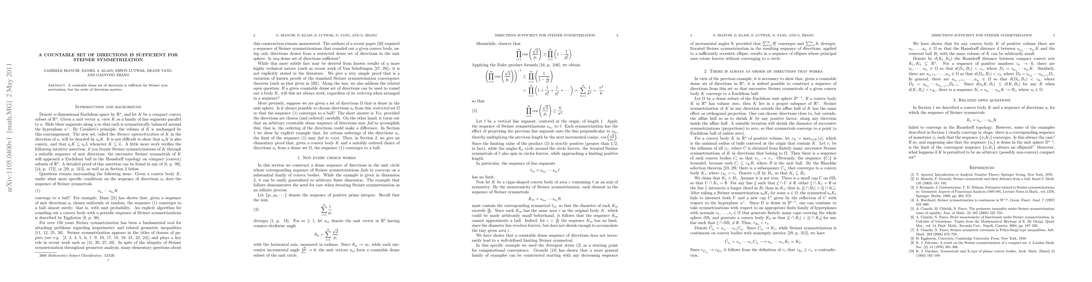 A countable dense set of directions is sufficient for Steiner symmetrization, but the order of directions matters.