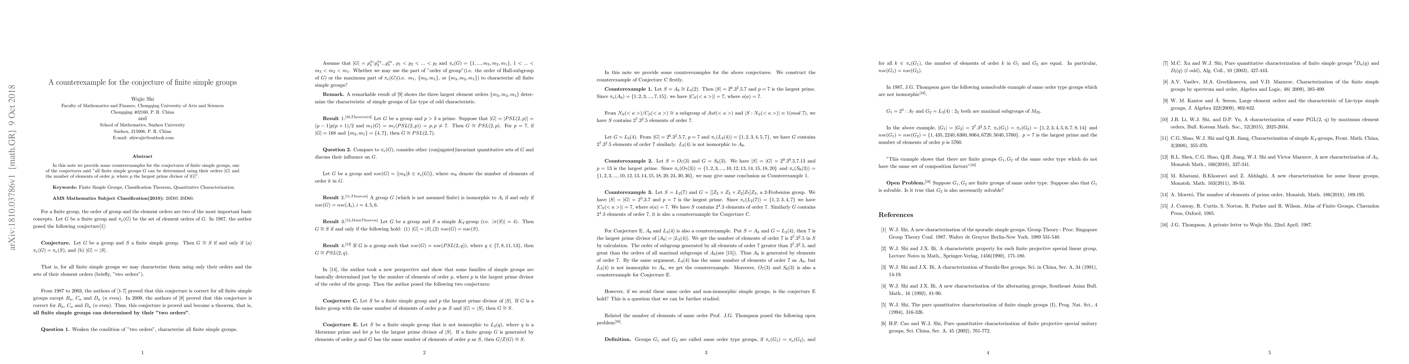 In this note we provide some counterexamples for the conjectures of finite simple groups, one of the conjectures said "all finite simple groups $G$ can be determined using their orders $|G|$ and the number of elements of order $p$, where $p$ the largest prime divisor of $|G|$".