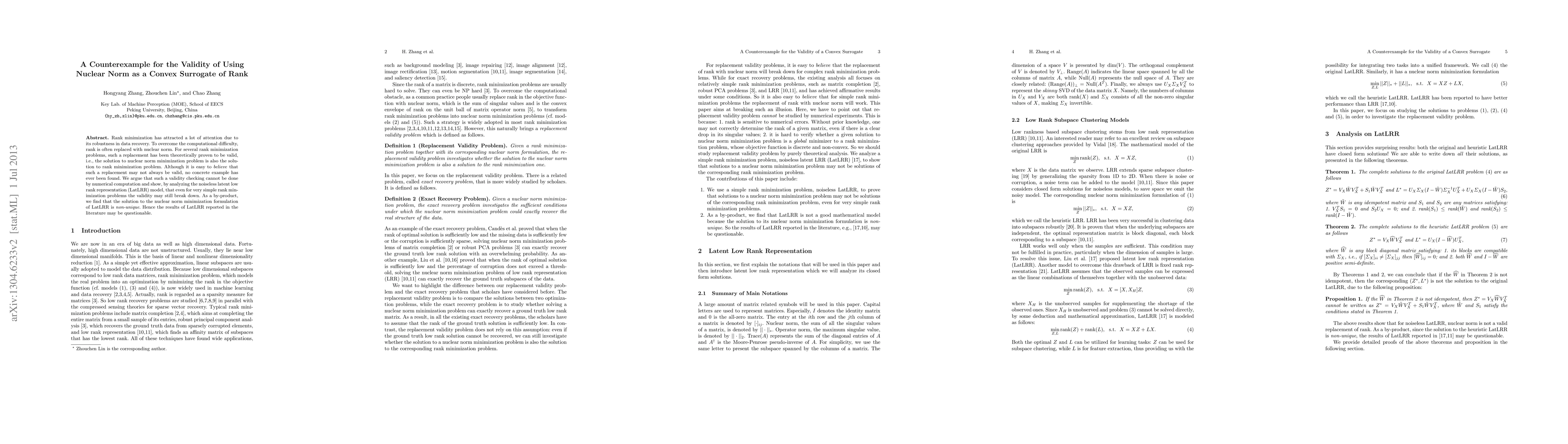 Rank minimization has attracted a lot of attention due to its robustness in data recovery. To overcome the computational difficulty, rank is often replaced with nuclear norm. For several rank minimization problems, such a replacement has been theoretically proven to be valid, i.e., the solution to nuclear norm minimization problem is also the solution to rank minimization problem. Although it is easy to believe that such a replacement may not always be valid, no concrete example has ever been found. We argue that such a validity checking cannot be done by numerical computation and show, by analyzing the noiseless latent low rank representation (LatLRR) model, that even for very simple rank minimization problems the validity may still break down. As a by-product, we find that the solution to the nuclear norm minimization formulation of LatLRR is non-unique. Hence the results of LatLRR reported in the literature may be questionable.