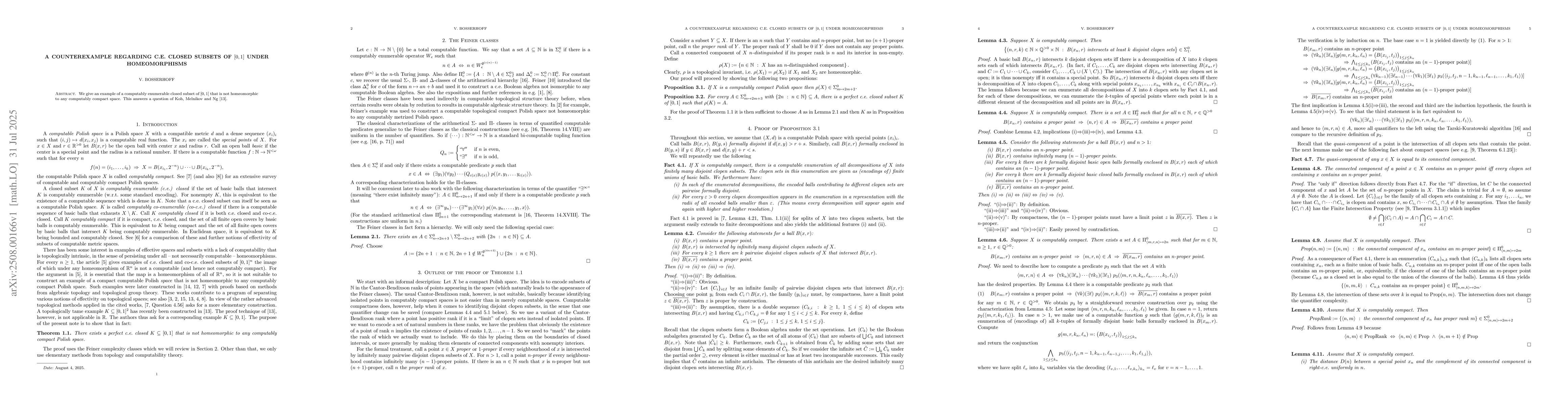 We give an example of a computably enumerable closed subset of [0,1] that is not homeomorphic to any computably compact space. This answers a question of Koh, Melnikov and Ng.