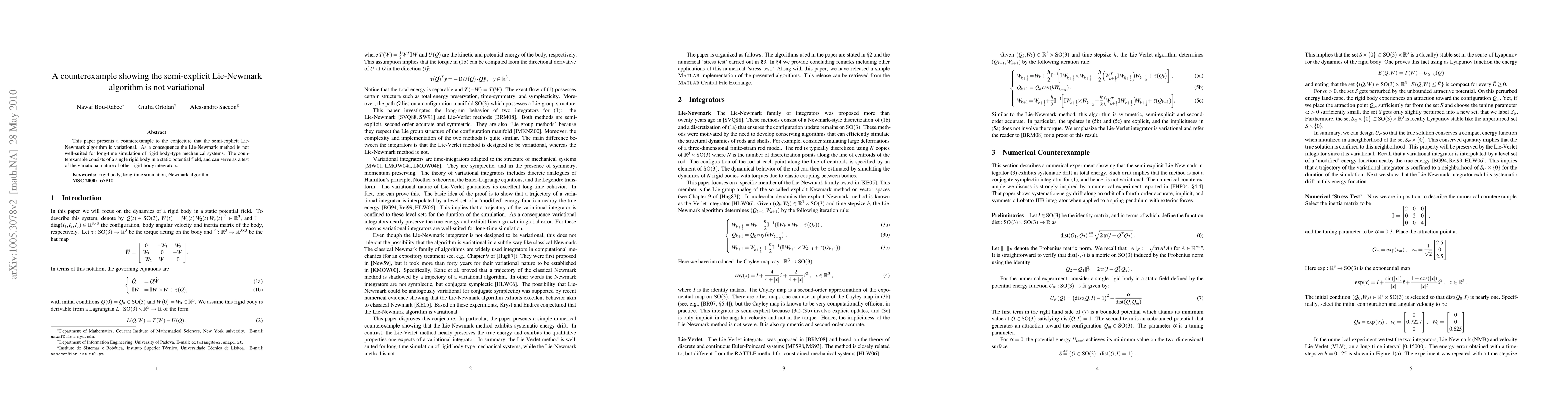 This paper refutes the conjecture that the semi-explicit Lie-Newmark algorithm is variational by presenting a counterexample involving a rigid body in a static potential field. It concludes that the Lie-Newmark method is unsuitable for long-term simulations of rigid body systems.