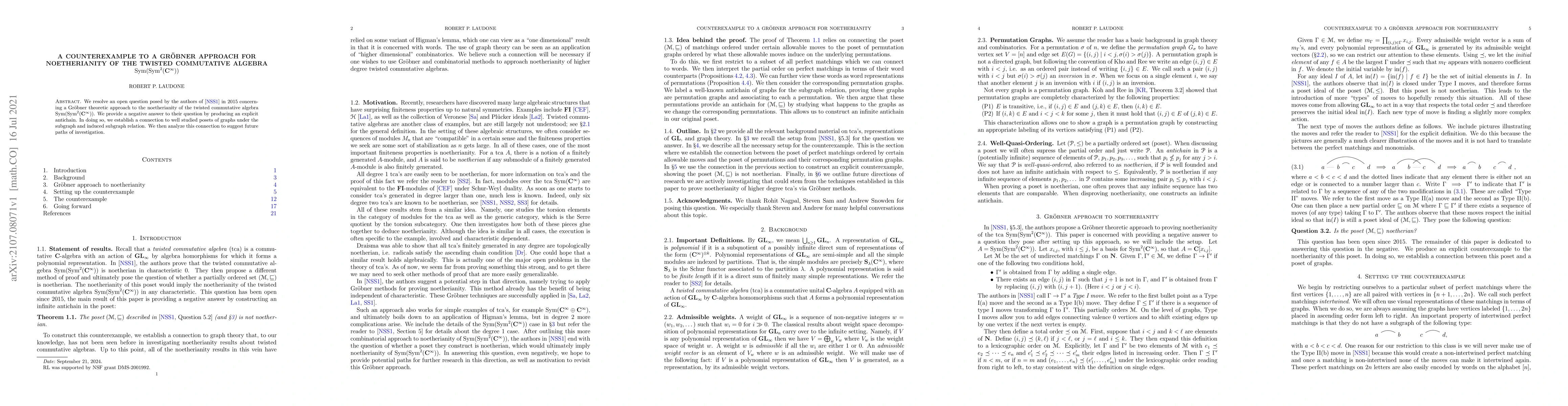 We resolve an open question posed by the authors of arXiv:1501.06925v2 in 2015 concerning a Gr\"obner theoretic approach for the noetherianity of the twisted commutative algebra ${\rm Sym}({\rm Sym}^2(\mathbf{C}^\infty))$. We provide a negative answer to their question by producing an explicit antichain. In doing so, we establish a connection to well studied posets of graphs under the subgraph and induced subgraph relation. We then analyze this connection to suggest future paths of investigation, for example a deeper study of initial ideals in twisted commutative algebras.