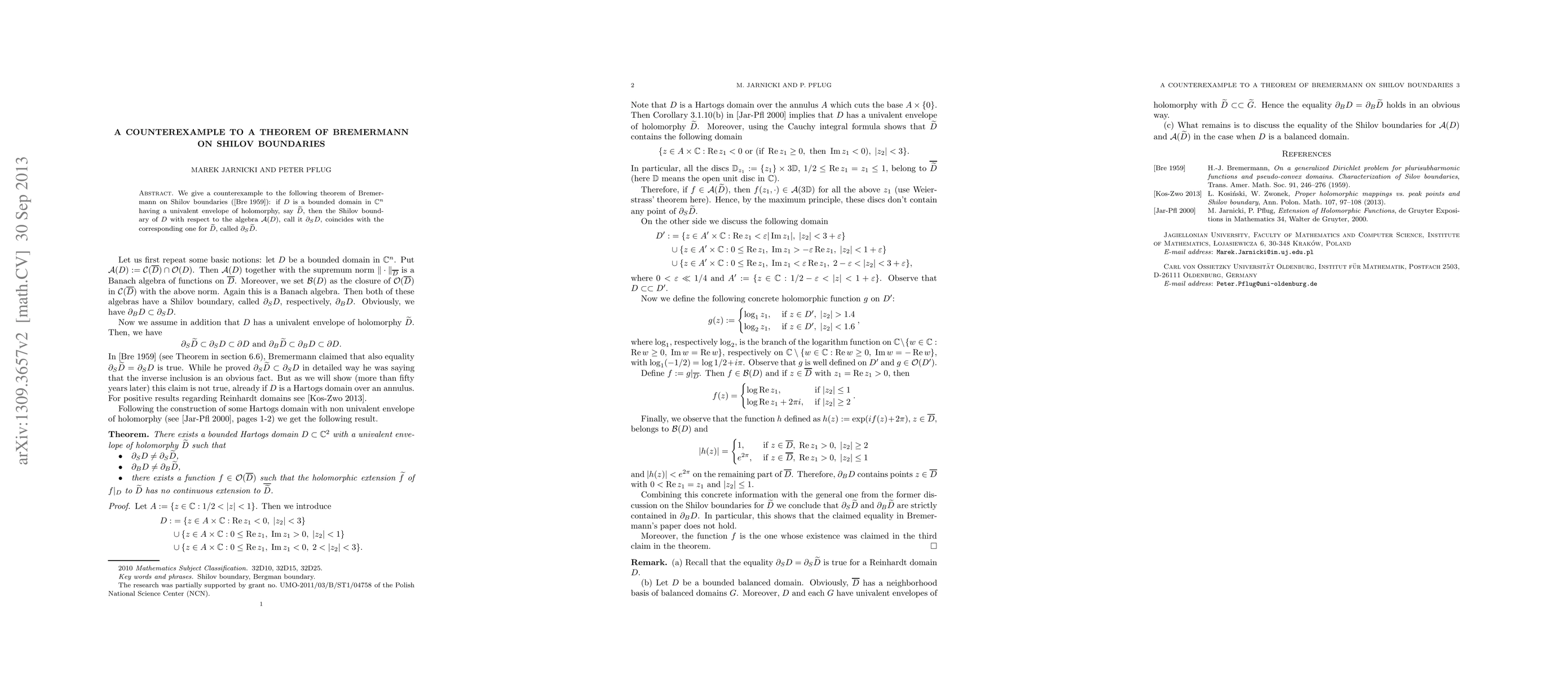 This paper presents a counterexample disproving Bremermann's theorem that the Shilov boundary of a bounded domain in $\mathbb{C}^n$ with a univalent envelope of holomorphy matches the Shilov boundary of the envelope. It challenges the established notion in complex analysis.