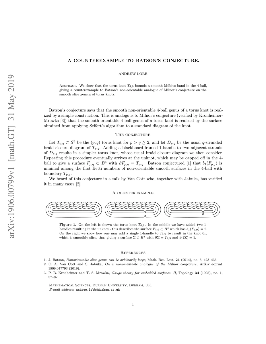 This paper presents a counterexample to Batson's conjecture by demonstrating that the torus knot $T_{4,9}$ bounds a smooth Möbius band in the 4-ball, contradicting the proposed non-orientable analogue of Milnor's conjecture on torus knot slice genera.