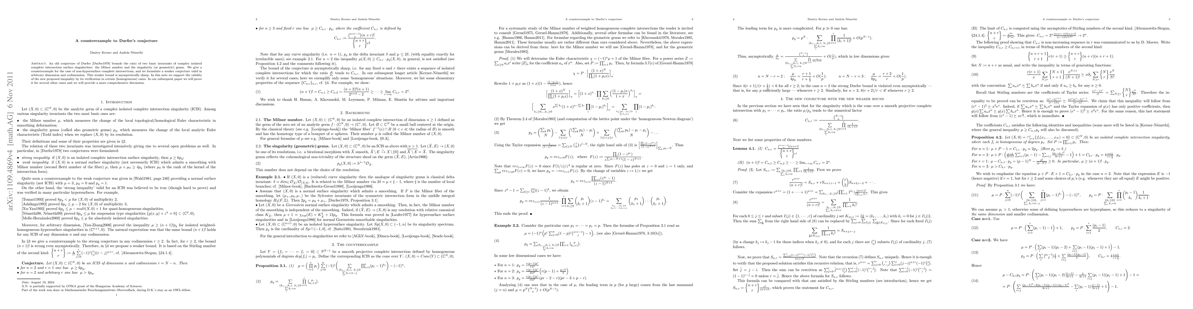 An old conjecture of Durfee 1978 bounds the ratio of two basic invariants of complex isolated complete intersection surface singularities: the Milnor number and the singularity (or geometric) genus. We give a counterexample for the case of non-hypersurface complete intersections, and we formulate a weaker conjecture valid in arbitrary dimension and codimension. This weaker bound is asymptotically sharp. In this note we support the validity of the new proposed inequality by its verification in certain (homogeneous) cases. In our subsequent paper we will prove it for several other cases and we will provide a more comprehensive discussion.