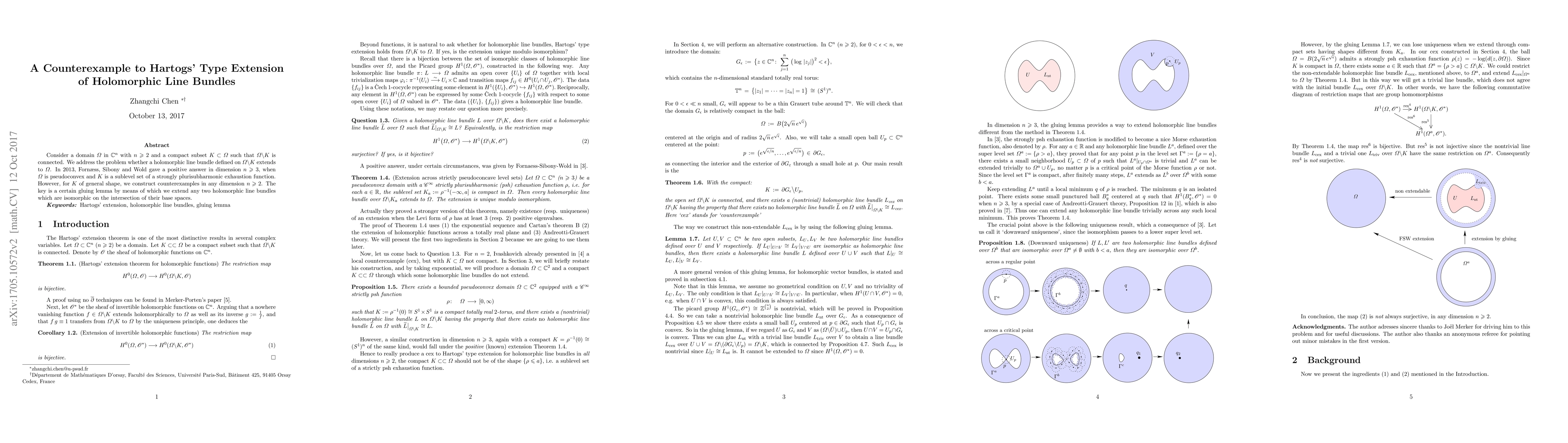 Consider a domain $\varOmega$ in $\mathbb{C}^n$ with $n\geqslant 2$ and a compact subset $K\subset\varOmega$ such that $\varOmega\backslash K$ is connected. We address the problem whether a holomorphic line bundle defined on $\varOmega\backslash K$ extends to $\varOmega$. In 2013, Forn\ae ss, Sibony and Wold gave a positive answer in dimension $n\geqslant 3$, when $\varOmega$ is pseudoconvex and $K$ is a sublevel set of a strongly plurisubharmonic exhaustion function. However, for $K$ of general shape, we construct counterexamples in any dimension $n\geqslant 2$. The key is a certain gluing lemma by means of which we extend any two holomorphic line bundles which are isomorphic on the intersection of their base spaces.