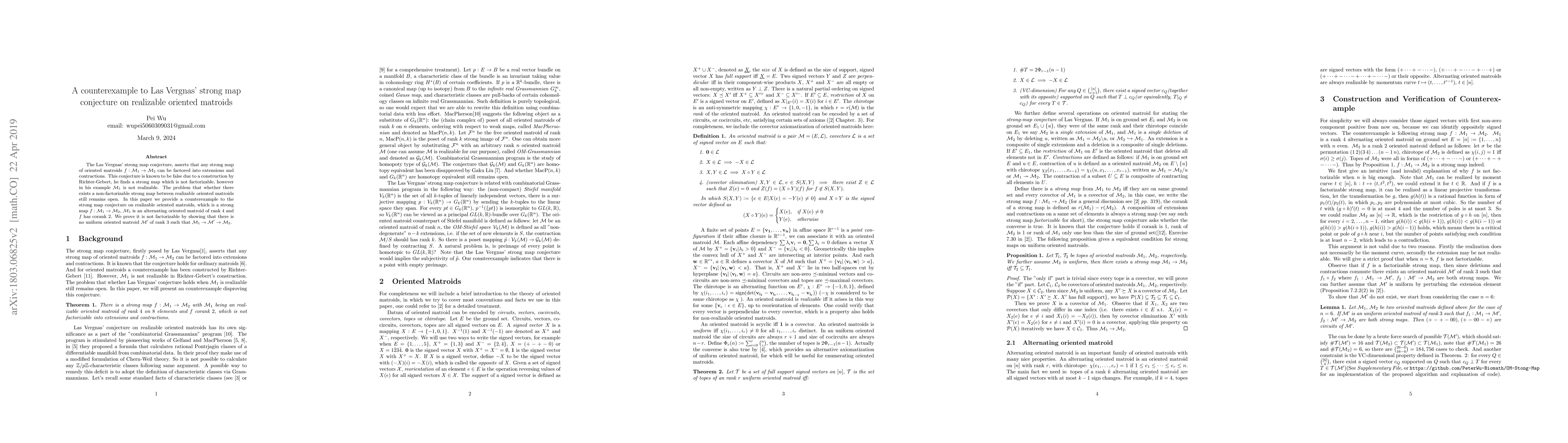 This paper disproves Las Vergnas' strong map conjecture for realizable oriented matroids by presenting a non-factorizable strong map $f:\mathcal{M}_1\rightarrow\mathcal{M}_2$, where $\mathcal{M}_1$ is a rank $4$ alternating oriented matroid and $f$ has corank $2$. It demonstrates the map cannot be factored through a rank $3$ uniform oriented matroid.