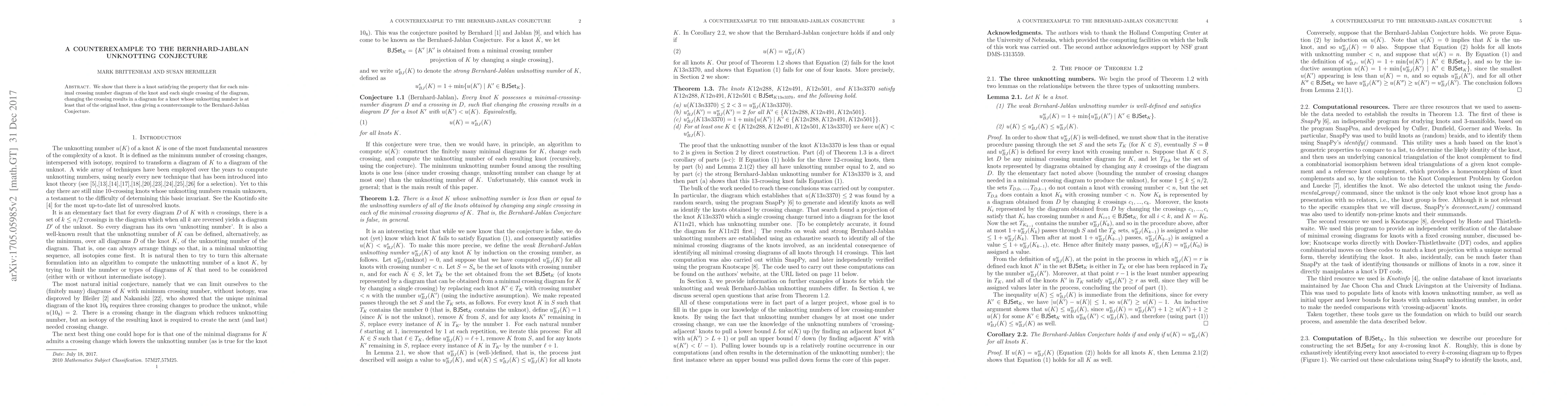 This paper presents a knot that disproves the Bernhard-Jablan Conjecture, demonstrating that altering any crossing in its minimal crossing number diagram does not decrease its unknotting number. This finding challenges the proposed relationship between crossing changes and knot complexity.