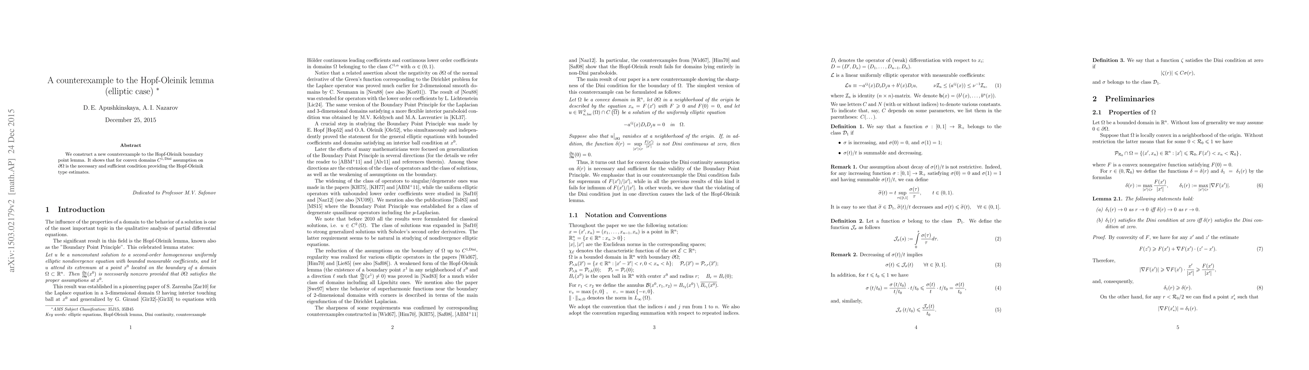 This research paper constructs a counterexample to the Hopf-Oleinik lemma in convex domains, confirming that the Dini-type condition is both necessary and sufficient for guaranteeing certain estimates.