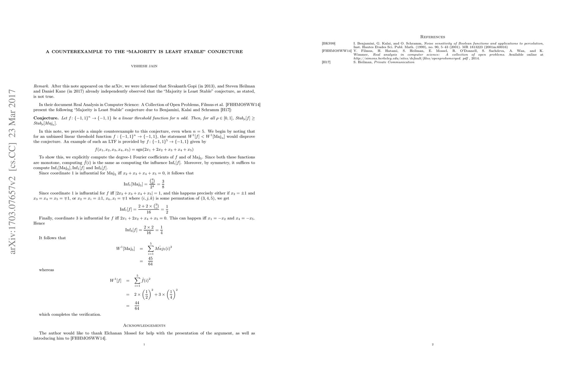 This paper presents a linear threshold function in 5 variables that demonstrates greater noise stability than the majority function, disproving the "Majority is Least Stable" Conjecture posited by Benjamini, Kalai, and Schramm.