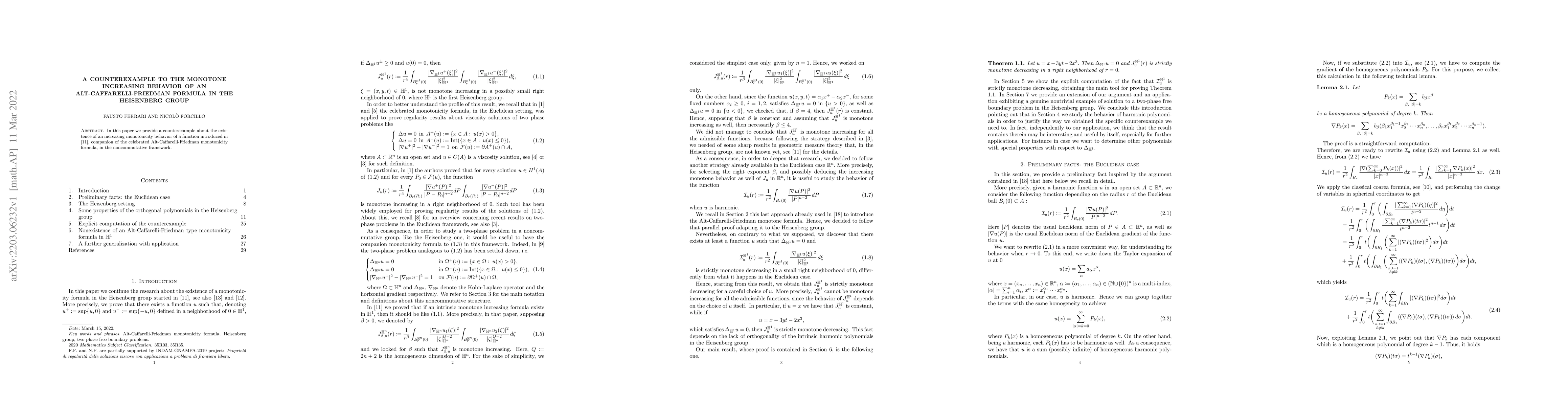 This paper presents a counterexample demonstrating that a function related to the Alt-Caffarelli-Friedman formula does not exhibit monotone increasing behavior in the Heisenberg group, challenging existing assumptions in the noncommutative framework.