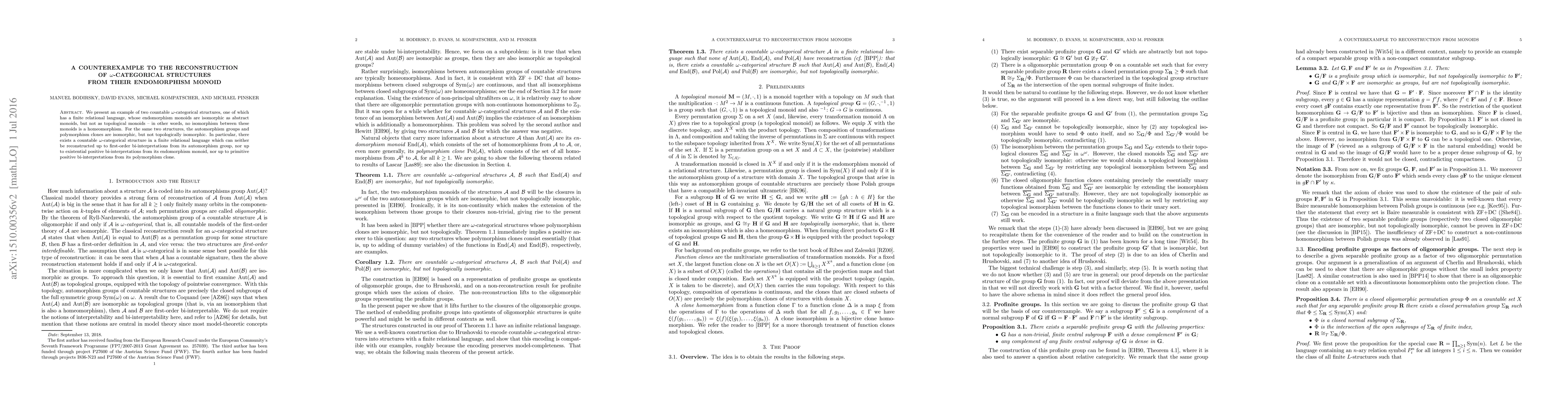 Researchers found a counterexample to reconstructing $ heta$-categorical structures from their endomorphism monoids, showing that certain structures cannot be rebuilt using specific types of bi-interpretations.