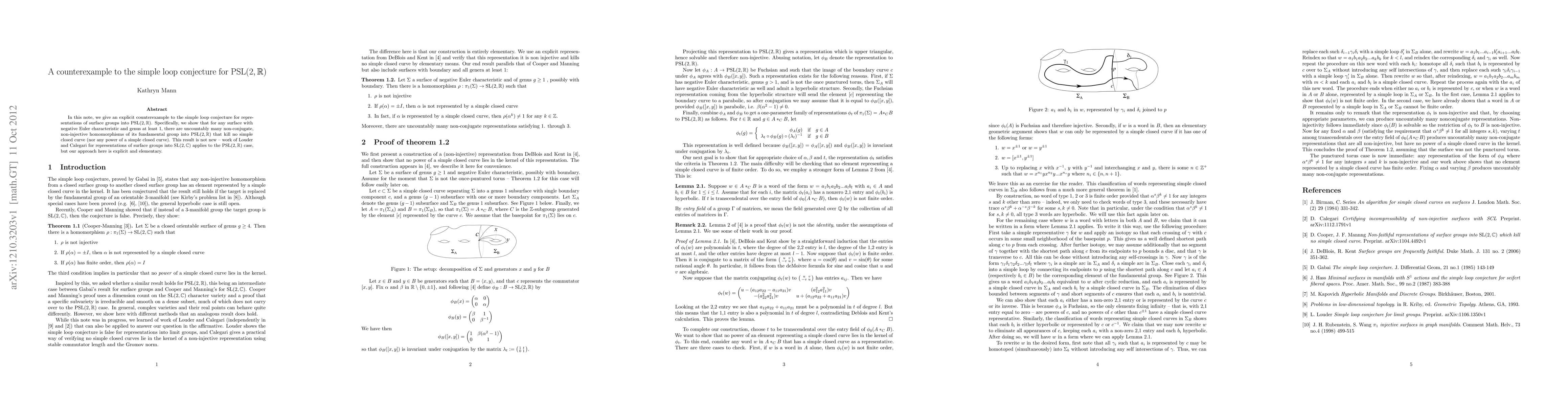 This paper provides an explicit counterexample to the simple loop conjecture for PSL(2,R), showing uncountably many non-conjugate homomorphisms from the fundamental group of surfaces with negative Euler characteristic and genus ≥1 into PSL(2,R) that do not map any simple closed curve. The approach is elementary and builds on Louder and Calegari's work for SL(2,C).
