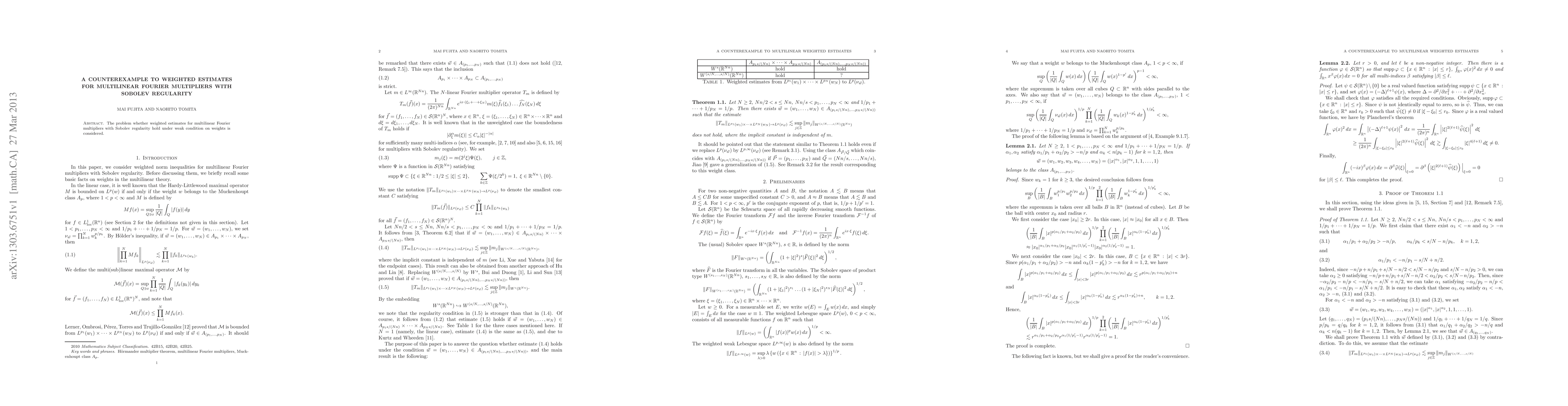 This paper presents a counterexample demonstrating that weighted estimates for multilinear Fourier multipliers with Sobolev regularity do not necessarily hold under weak conditions on the weights. The findings challenge existing assumptions in this area of mathematical analysis.